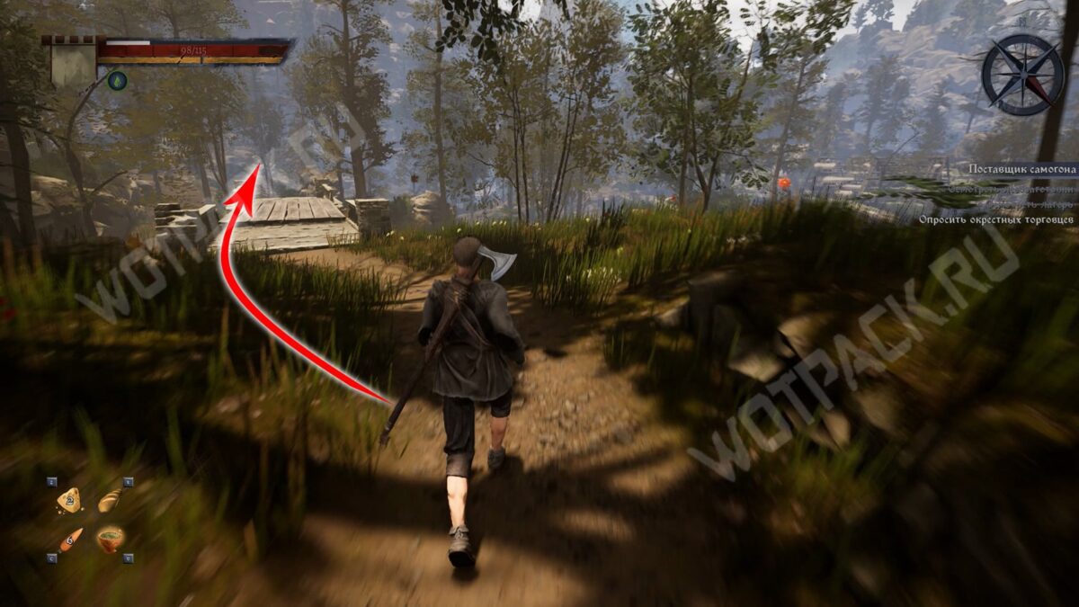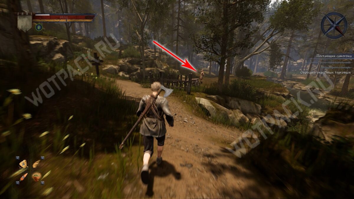 Поставщиком спиртного является Радим, ранее встречавшийся в задании Плохой район. Отправляйтесь по юго-западной тропе от лагеря дровосеков к переправе из миссии Сломанный мост.