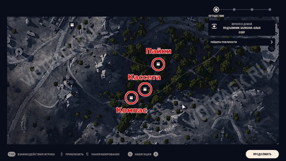 Коробку с едой найти проще всего, так как она спрятана внутри железной постройки, северо-восточнее предыдущих точек.