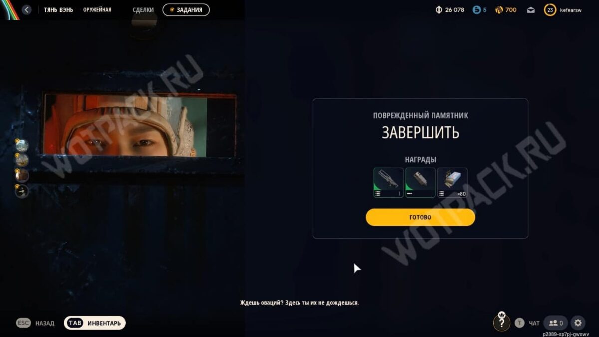 За один раунд нужно выполнить все цели задания. Если забудете принести Тянь Вэнь один из предметов, придётся отправляться в рейд и снова исследовать все места.