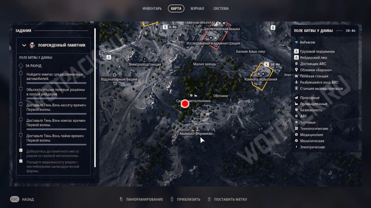 В ARC Raiders миссия Поврежденный памятник ориентирована на поиск уникальных предметов. Оружейница Тянь Вэнь просит вернуть три памятные вещи времён Первой волны, затерянные среди металлолома на свалке. Отправляйтесь на поле битвы у дамбы и исследуйте зоны локации по ориентирам. Чтобы успешно завершить миссию, вынесите находки с рейда и отдайте торговке для получения награды.