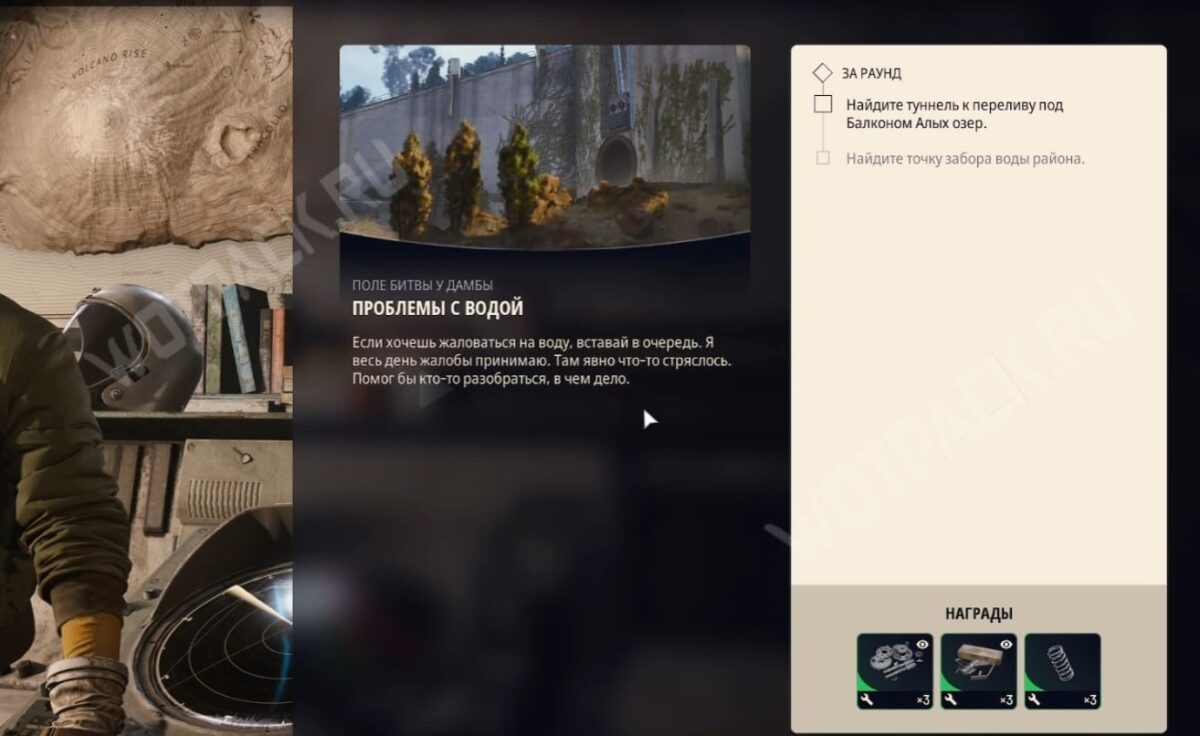Квест открывается после выполнения заданий «После дождя» и «Суть проблемы». Все этапы проходят на стартовой карте «Поле битвы у дамбы», выносить лут не требуется — можно идти с бесплатной экипировкой.