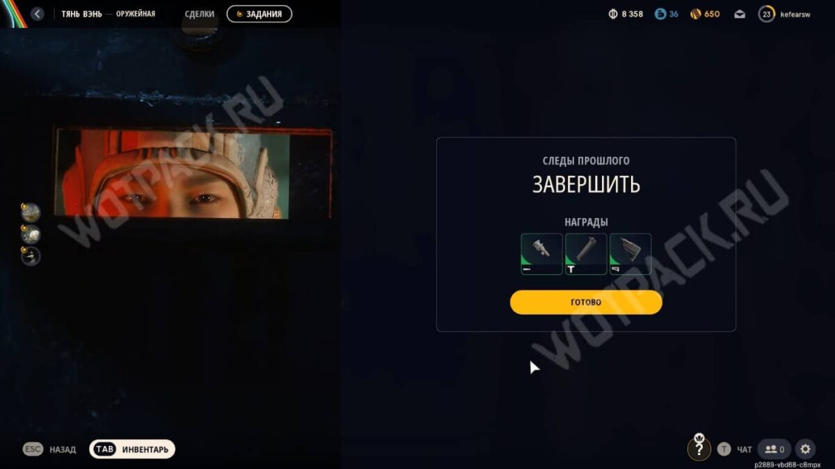 Вернувшись с последней вылазки, загляните к Тянь Вэнь за наградами и заберите набор зелёных обвесов для оружия: