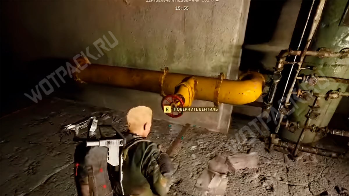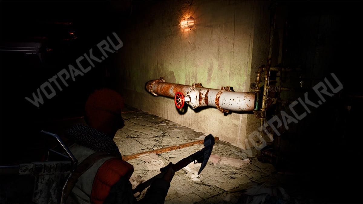 В ходе выполнения квеста предстоит отыскать вход в подземную часть локации и найти жёлтую трубу с красным вентилем. Забирать с поверхности предметы не потребуется, поэтому, если боитесь столкнуться с другими игроками и потерять вещи, можете пойти с бесплатной экипировкой.