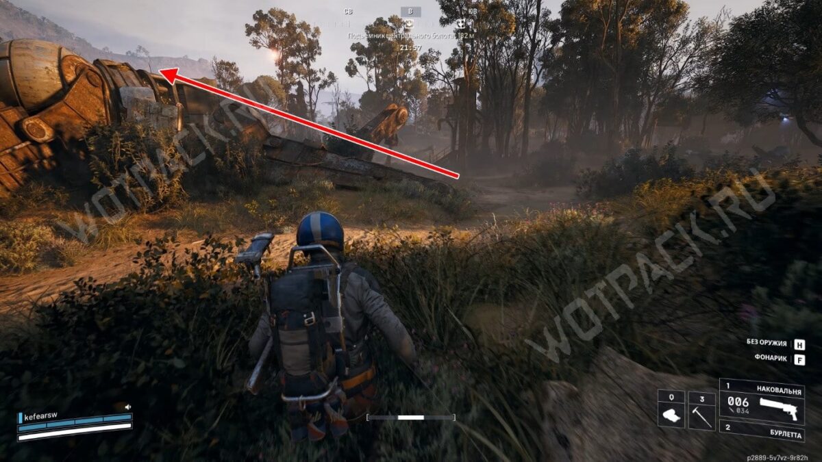 - между диспетчерской водоочистителя и аванпостом на южном болоте.