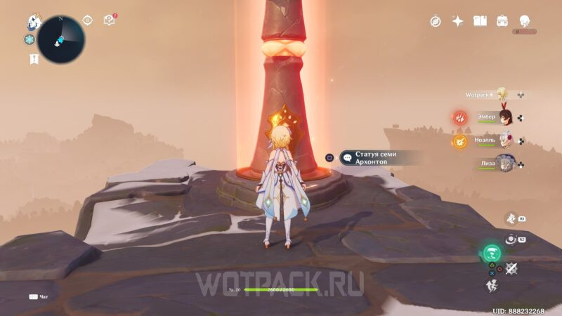 Скрытое достижение «До небес» можно получить сразу после предыдущего. Стоя на той же башне, возьмите в отряд Пиро персонажа и зажгите им три факела вокруг тотема.