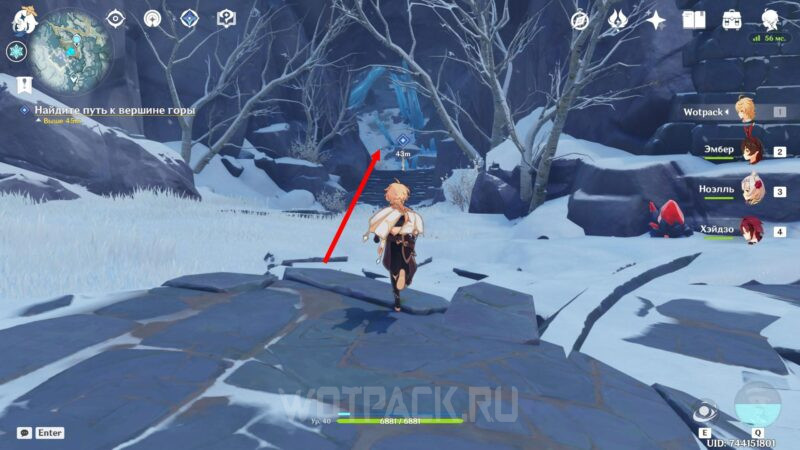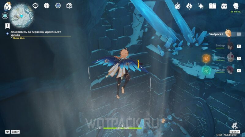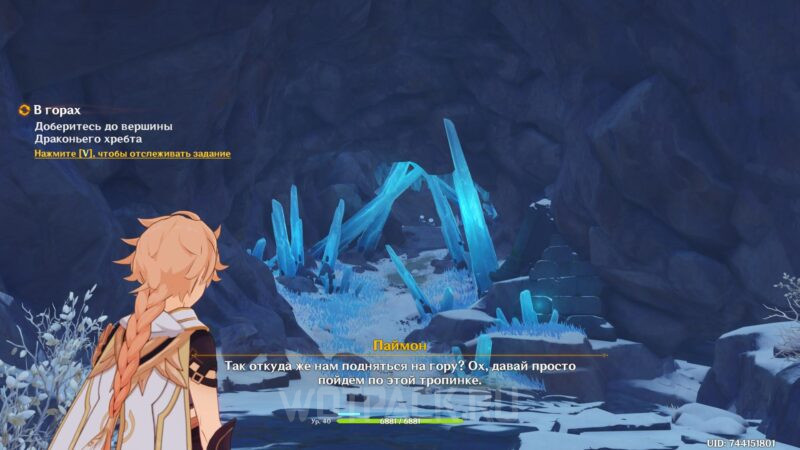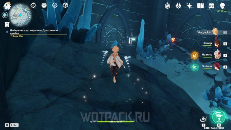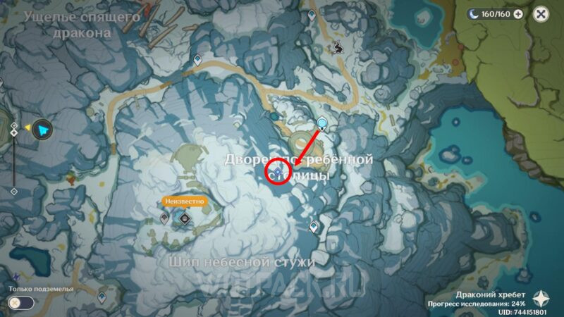 Телепортируйтесь к Статуе Анемо Архонта на ледяной горе. От нее направляйтесь в пещеру на юго-западе и доберитесь до вершины Драконьего хребта.