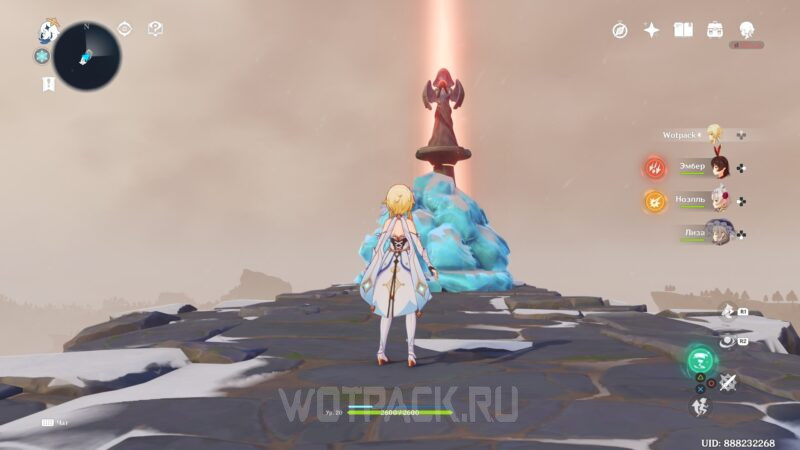 Стоит сразу открыть и Статую Анемо Архонта на Драконьем хребте, так как рядом с ней персонаж не замерзает, вместе с этим откроется карта области и добираться до нужных точек от нее гораздо быстрее. Чтобы это сделать, отправляйтесь на гору и двигайтесь к башне, ориентируясь на красный столп света, исходящий от нее.