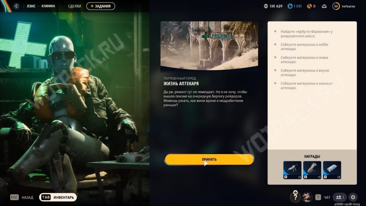 Получив всю информацию, можете продолжить рейд или сразу вернуться в Сперанцу. За выполнение задания «Жизнь аптекаря» получите несколько редких расходников в Арк Райдерс: