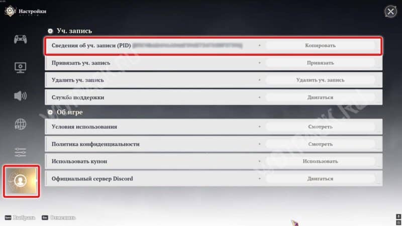 Его можно найти в последней вкладке настроек, рядом с пунктом «Сведения об учетной записи» и скопировать. После этого введите данные в поля и нажмите кнопку «Использовать».