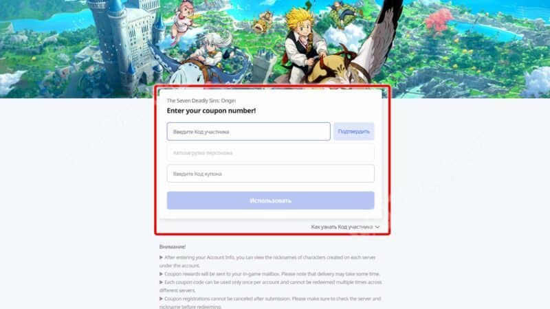 Рабочие промокоды The Seven Deadly Sins: Origin на март