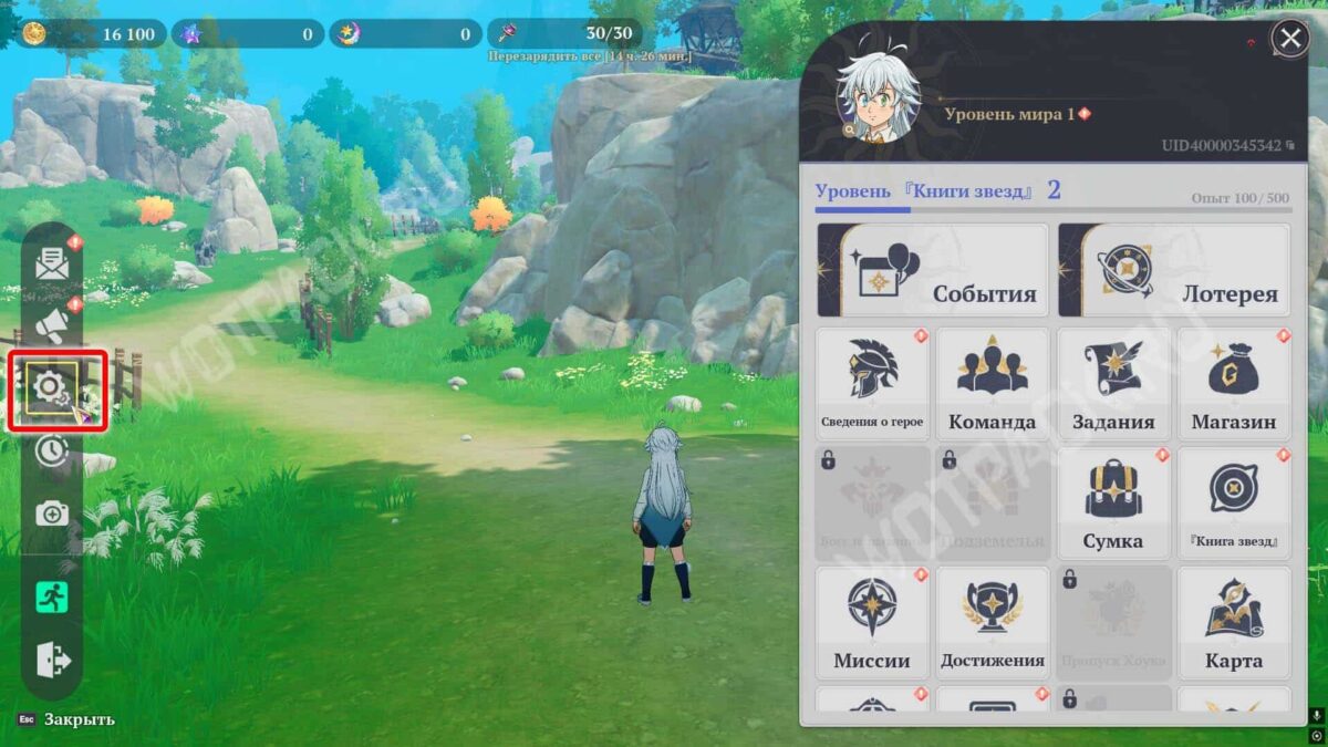 - В левой части экрана кликните на значок с шестеренками и откройте «Настройки».