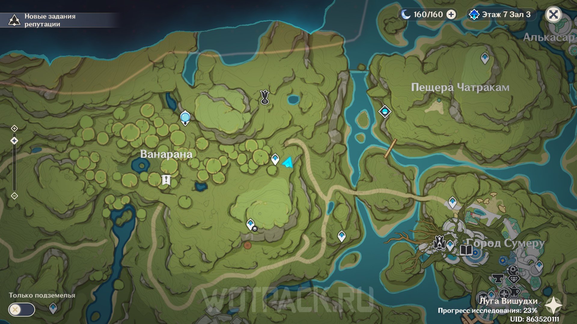 К противникам с крыльями также можно отнести крылатых Дендро и Крио моровиков, обитающих в Сумеру. Один Дендро моровик находится на склоне в восточной части Ванараны. Отправляйтесь к телепорту и пройдите немного по дороге на восток, чтобы сфотографировать врага.
