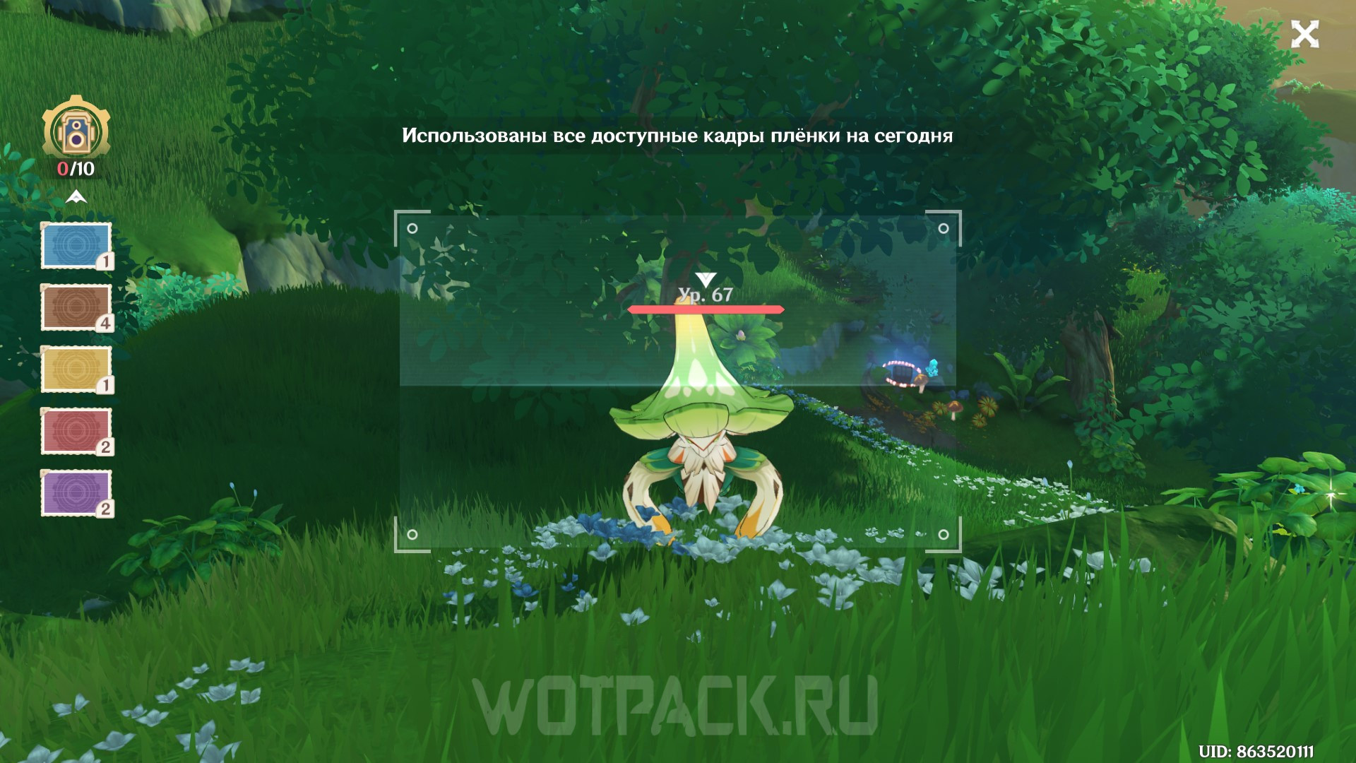 Для снимков подойдут Анемо слаймы, которых можно найти почти в каждом регионе. Проще всего их обнаружить в Мондштадте неподалеку от Храма Сокола на севере Долины Ветров. Заберитесь на возвышенность, где растут одуванчики, и сделайте фото слаймов.