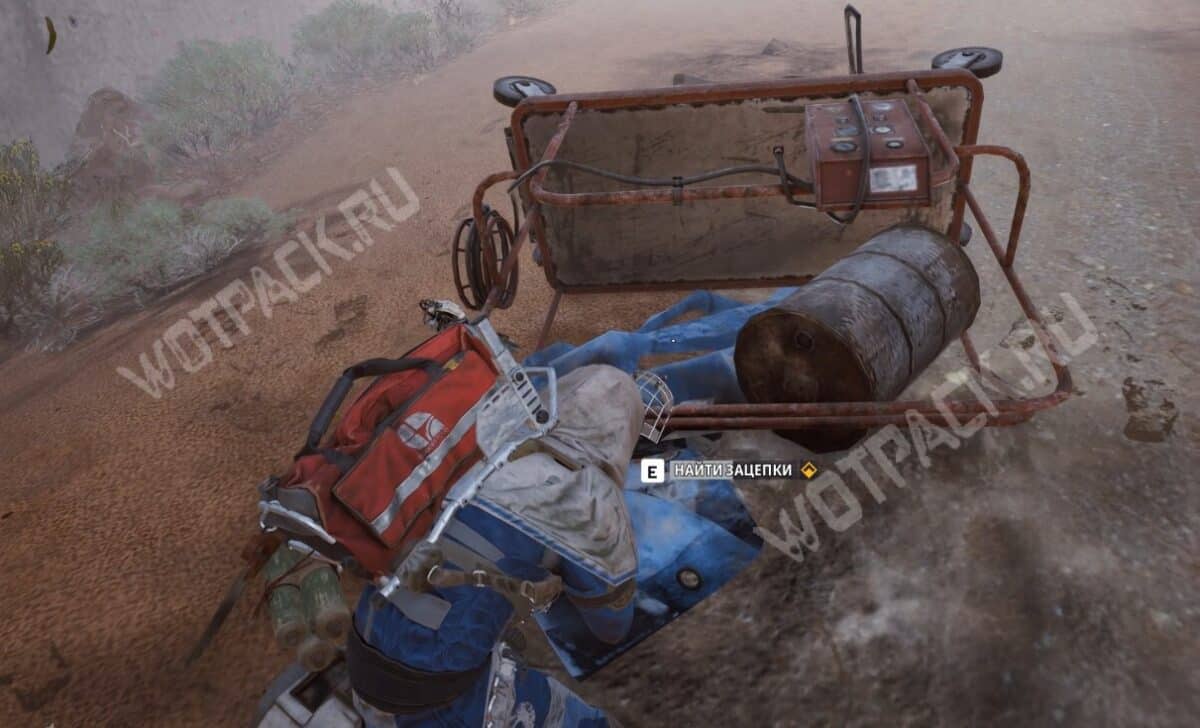 От вышки пройдите по тропинке до ремонтного ангара. К югу от него лежат разбросанные тележки, местоположением которых необходимо поделиться.