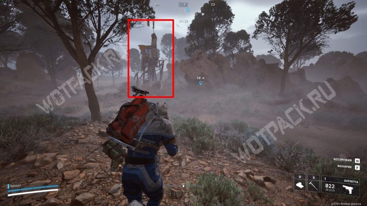 Выдвигайтесь на юго-запад и доберитесь до старой рейдерской башни: она стоит севернее ремонтного ангара в нижней части карты. Строение легко заметить благодаря жёлтой ткани на крыше.