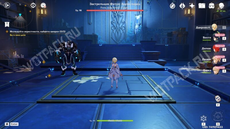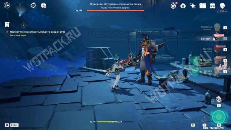 Первыми противниками окажутся Беннет и глава Искателей приключений. По словам ведьмы, они – «отважные и преданные своему делу» воины. После короткого диалога запустится обязательное сражение с «Застрельщиком Фатуи: Анемо борцом», роль которого исполняет Сайрус.