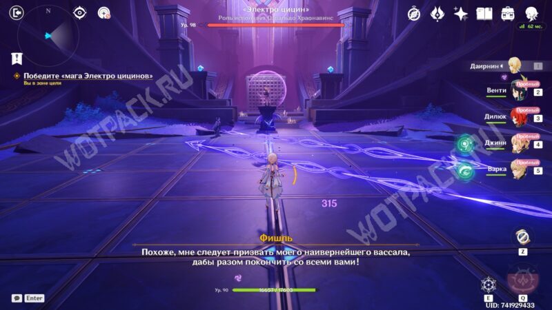 Последним противником окажется воровка Фишль. Она призовет несколько волн воронов, выпускающих электрические заряды.