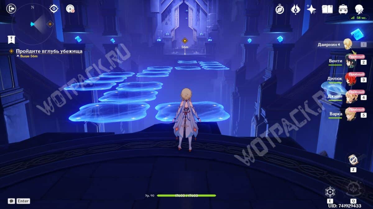 Первым испытанием в подземелье «Фатуи» окажется невидимый мост. Фантом Николь озвучит подсказку: «Люди не сомневаются в том, что видят собственными глазами, и не отрицают землю под своими ногами. То, что не вызывает сомнений, часто оказывается ложным. В таких случаях нужно перевести взгляд куда-то еще. Например… наверх».