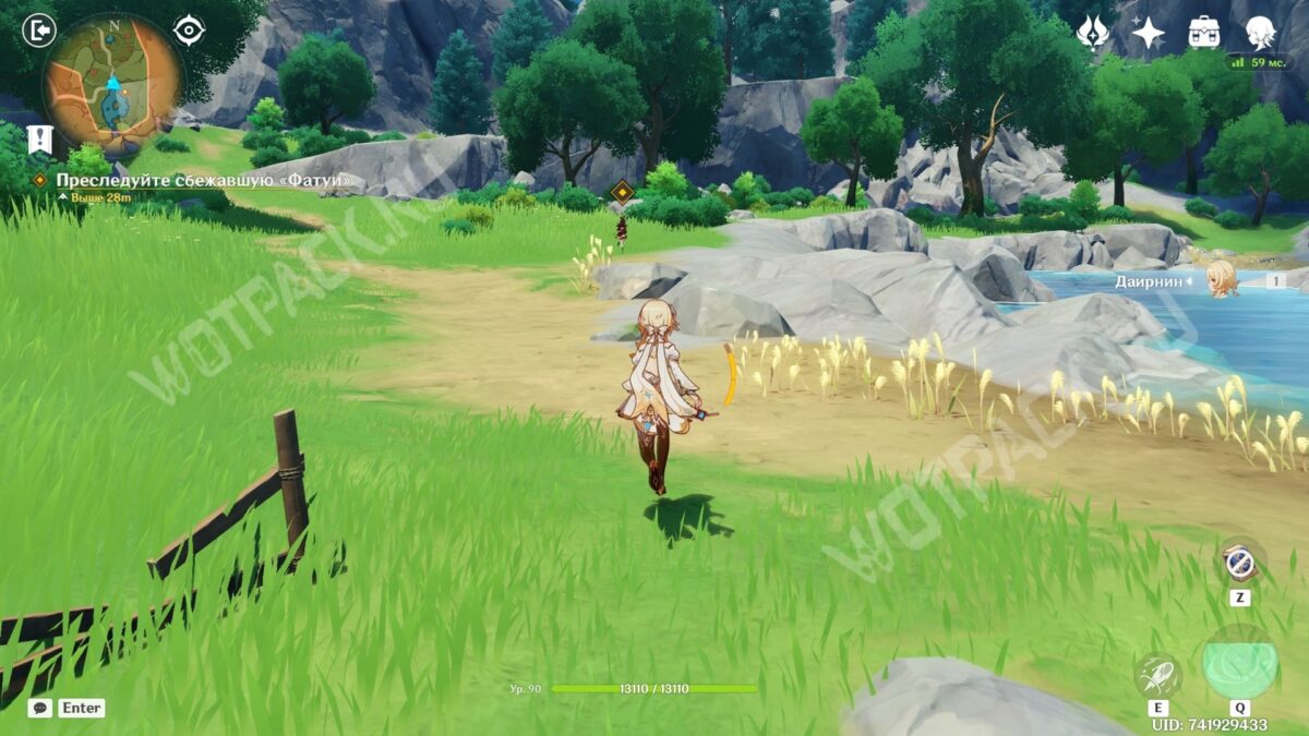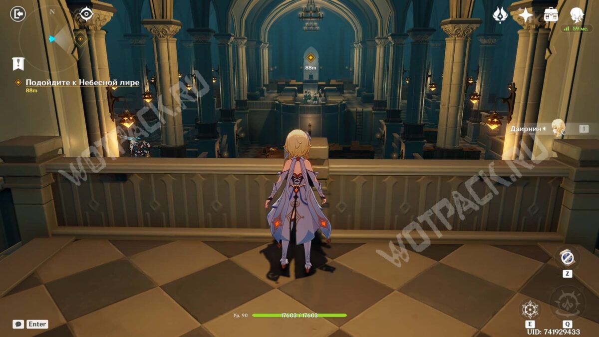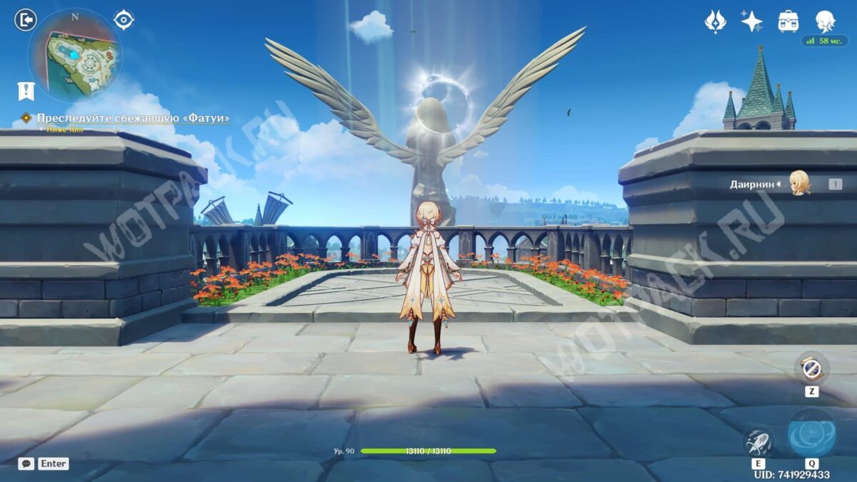 Забрать реликвию не получится — как и в прошлый раз её украдут прямо на глазах Путешественника. Покинув собор, преследуйте сбежавшую «Фатуи» по воздуху, а затем бегите за ней вслед к озеру у Спрингвейла.