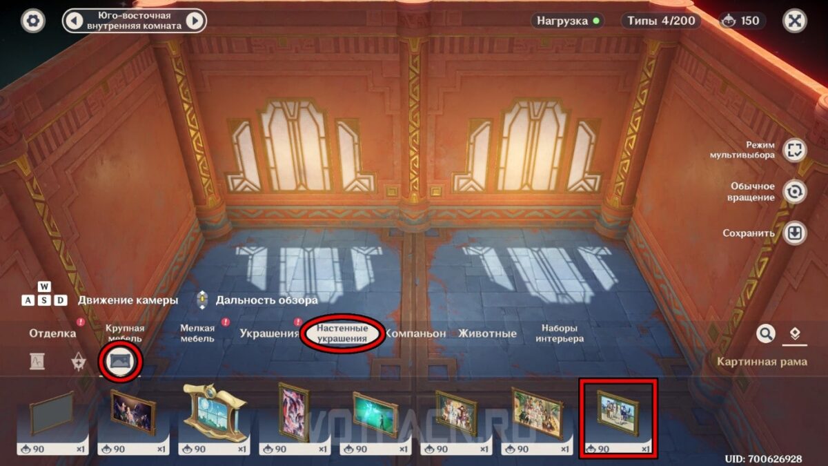 Для его использования переместитесь в Чайник и войдите в режим редактирования интерьера. Фотография находится во вкладке «Настенные украшения», а именно в разделе с картинами.