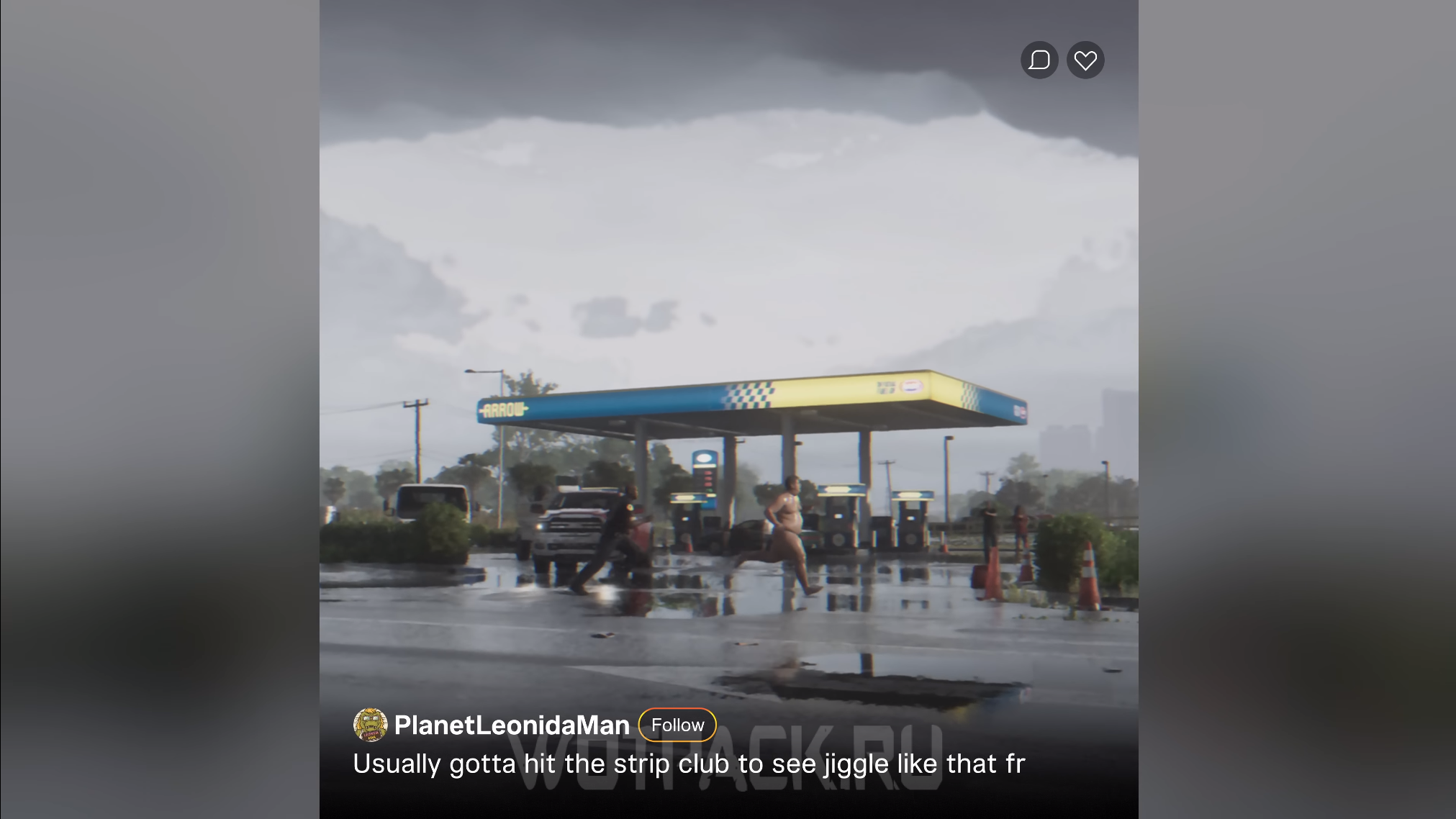 На несколько секунд Rockstar показали еще один тренд тиктока – Гоуст райдинг (Ghost Riding). Водитель покидает водительское место и забирается на крышу, либо на дверь, оставляя машину ехать самостоятельно. В последние годы в США было зафиксировано немало смертельных случаев при попытках повторить такие трюки ради лайков и новых подписчиков.