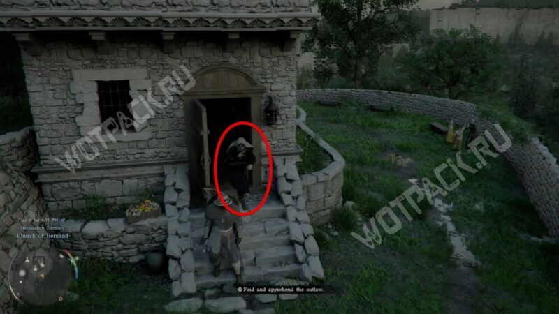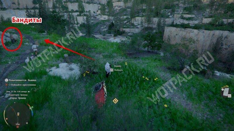 В зависимости от того, где увидите преступницу, она или выскочит из кухни, или побежит на дорогу, ведущую на север. Во втором случае можете наткнуться на разбойников, которых сначала придётся убить, потому что они будут мешать поимке.