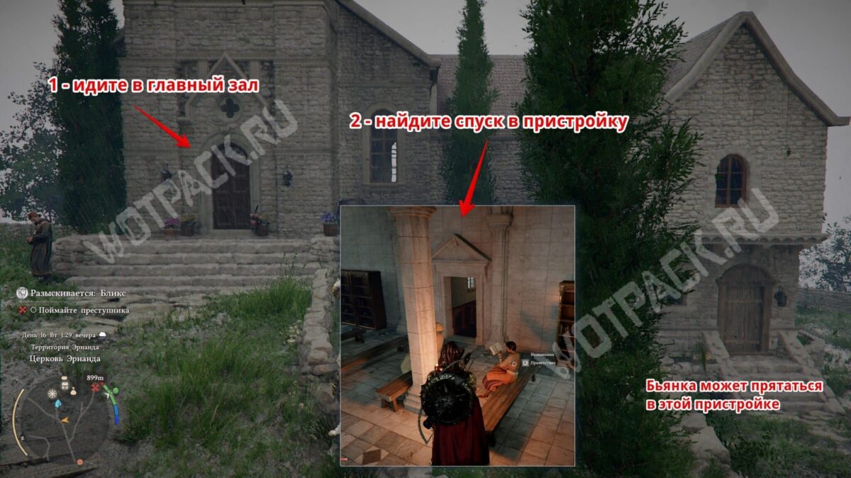 - Проверяйте внутри церкви, она может находиться на кухне на первом этаже (не нужно использовать ключ — пройдите туда через главный вход с молитвенным залом или через окно).