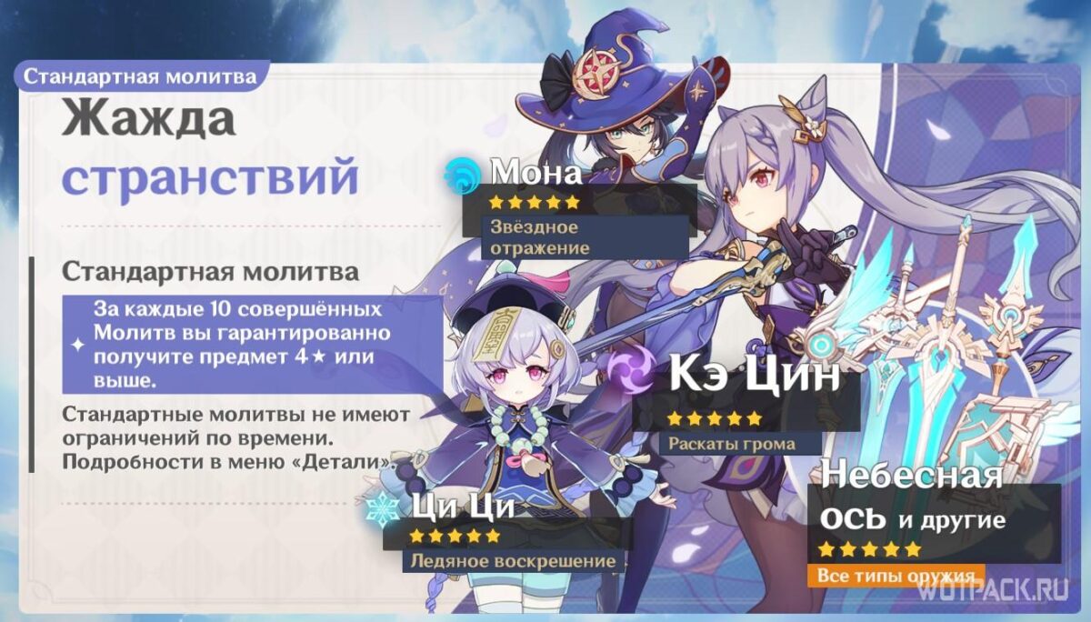 - Перейти на баннер с молитвами (сделать 10 прокруток с баннеров «Желание новичка» или «Призыв к странствиям», а затем использовать оставшиеся Переплетающиеся судьбы или Судьбоносные встречи на одиночных попытках).