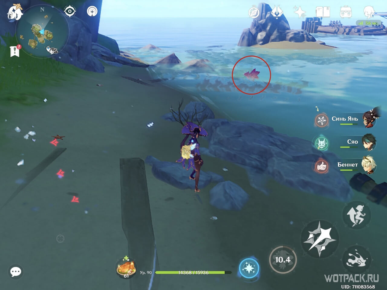 - на скале на противоположном берегу: если не можете залезть, значит уперлись в прозрачную пластину. Вскарабкайтесь правее;