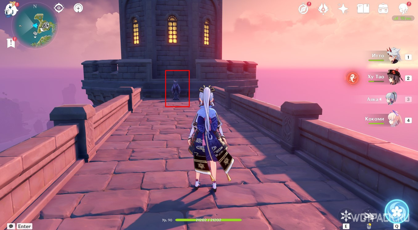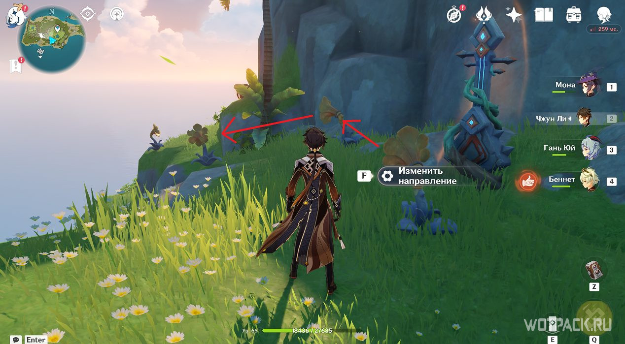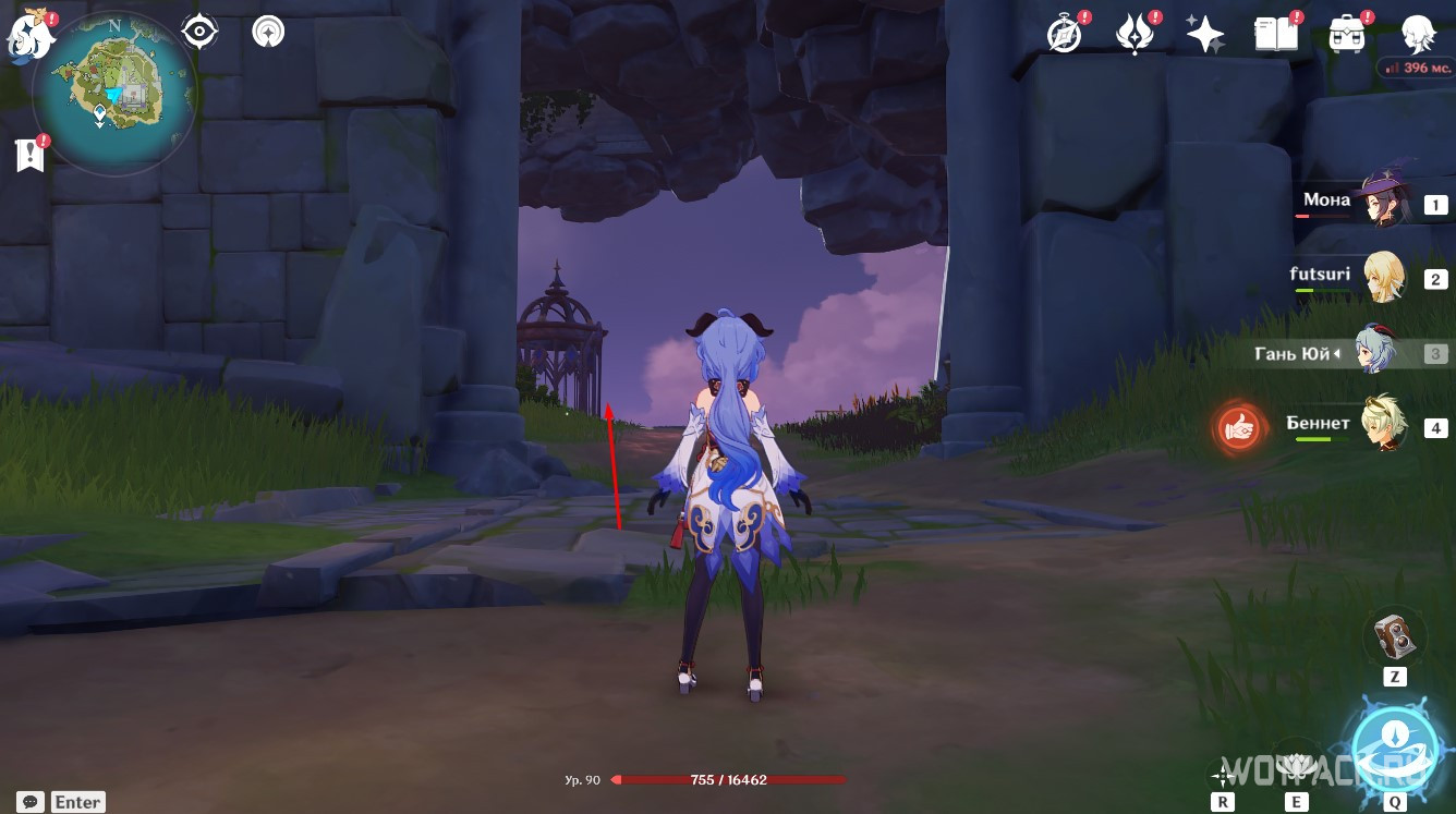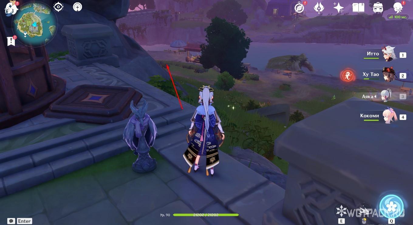 После активации Электро, Анемо и Гео монументов, описанных в разделах выше, снова отправляйтесь к фее-помощнице. Подойдите к ней и проводите до места.
