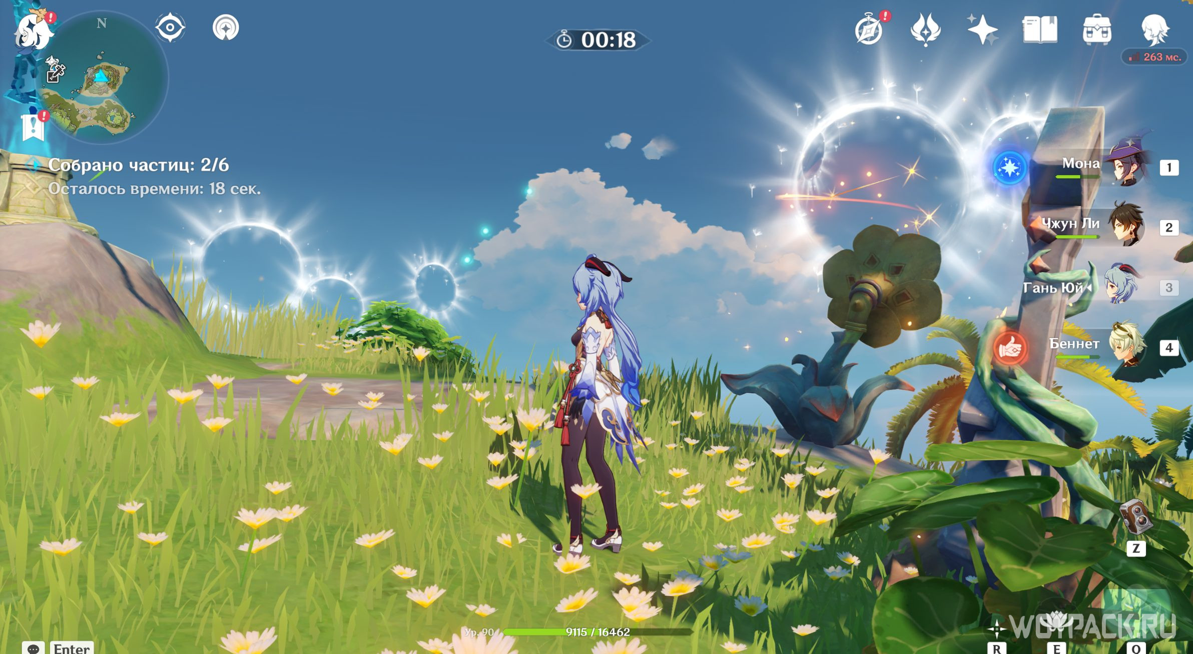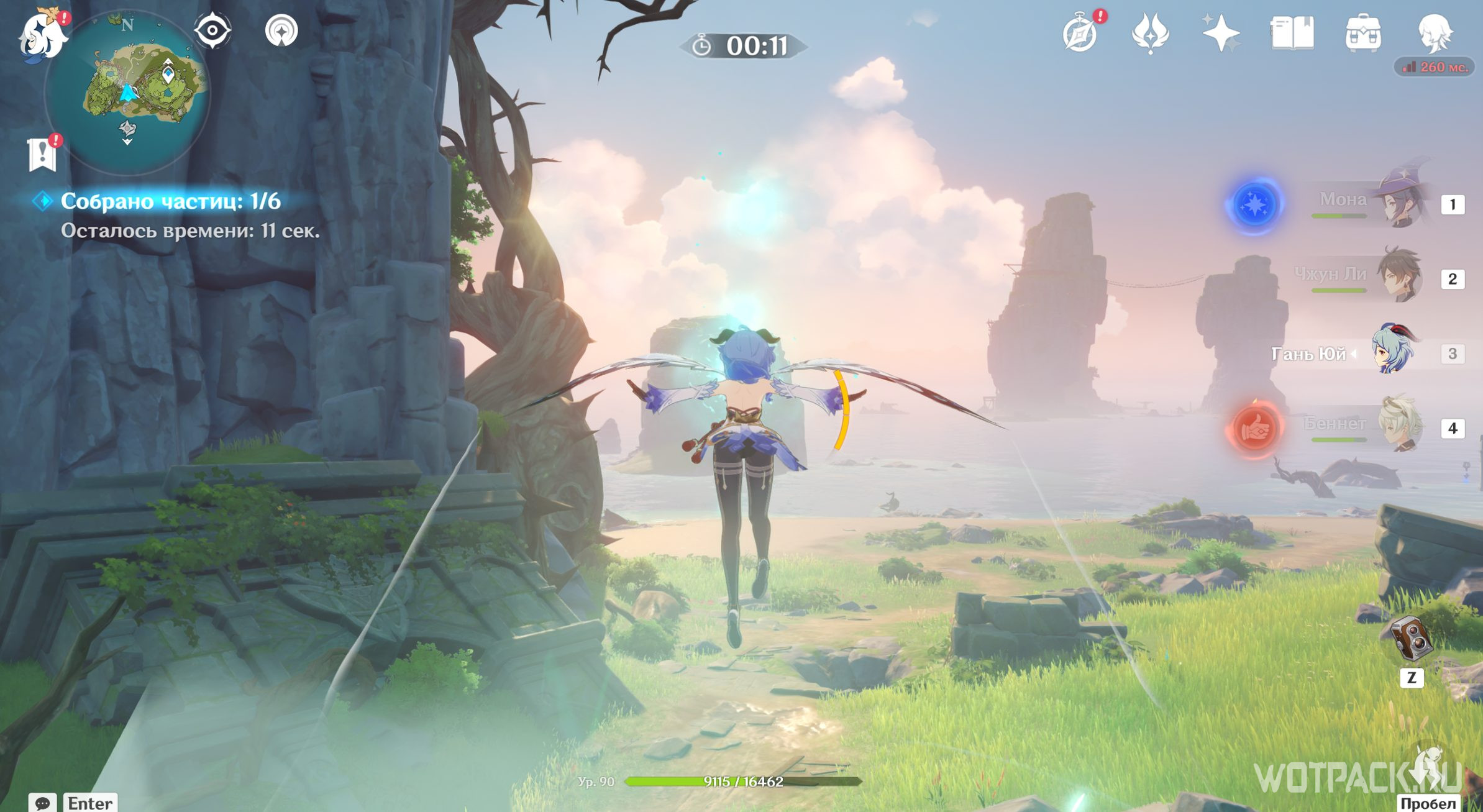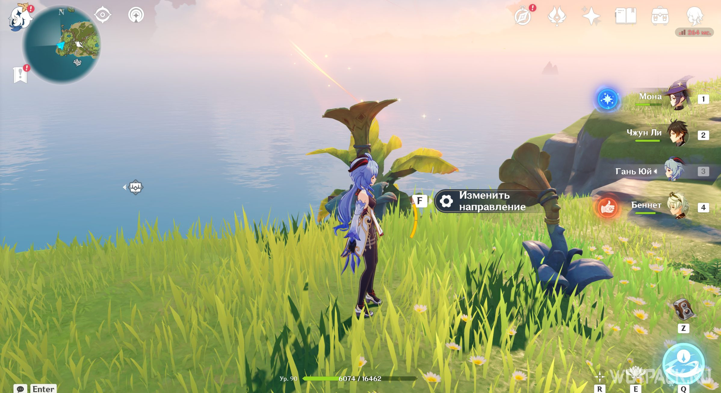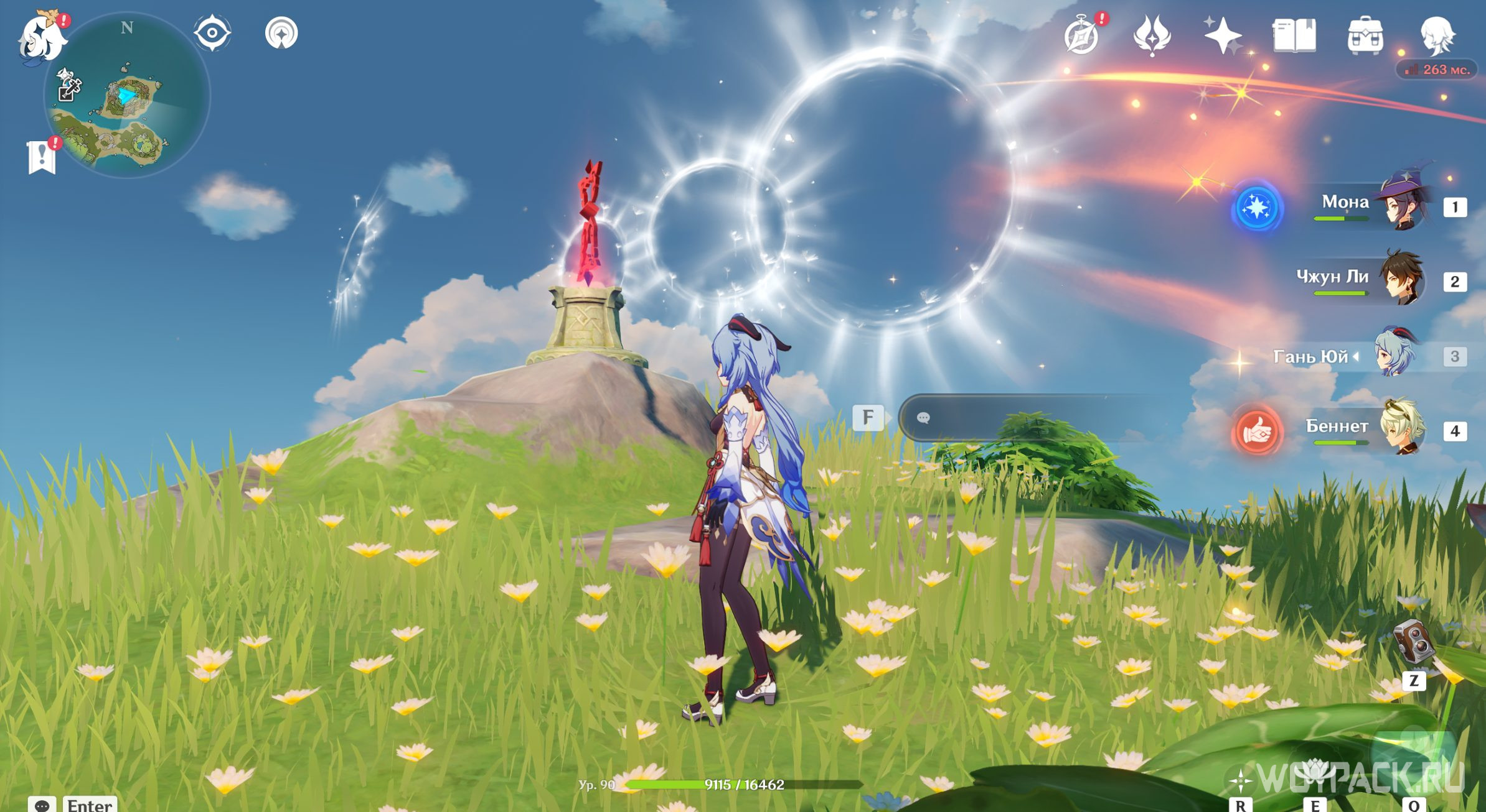 После активации Электро, Анемо и Гео монументов, описанных в разделах выше, снова отправляйтесь к фее-помощнице. Подойдите к ней и проводите до места.