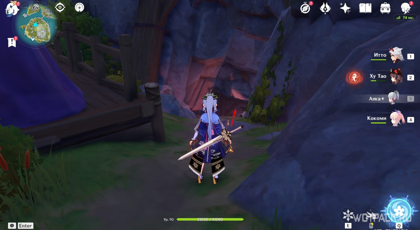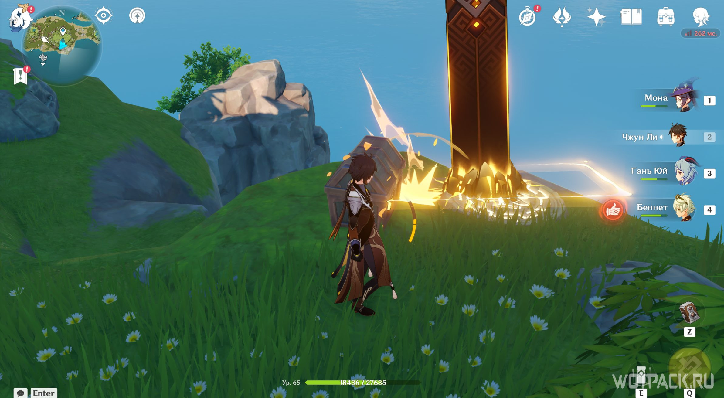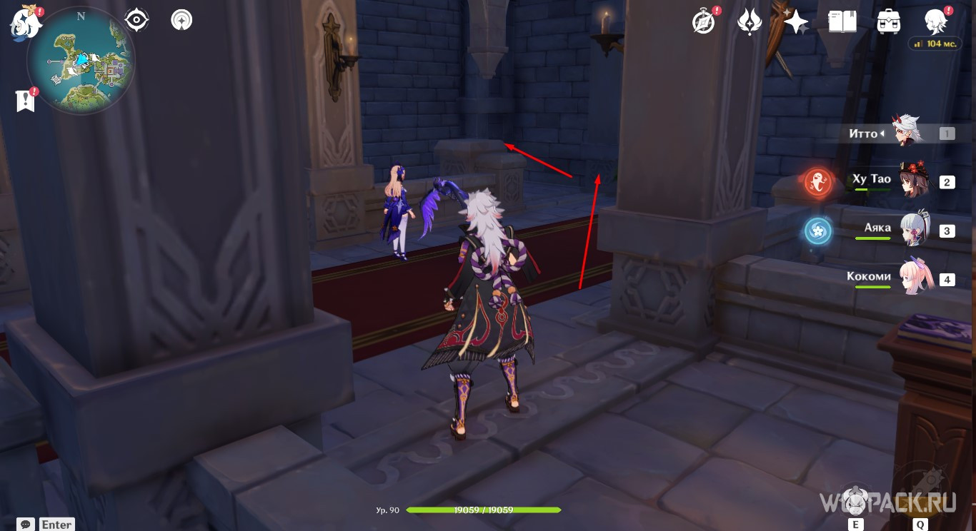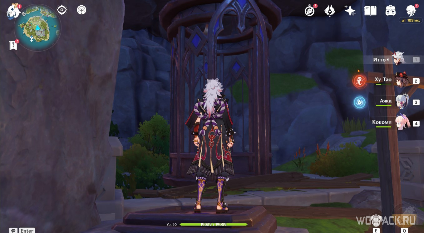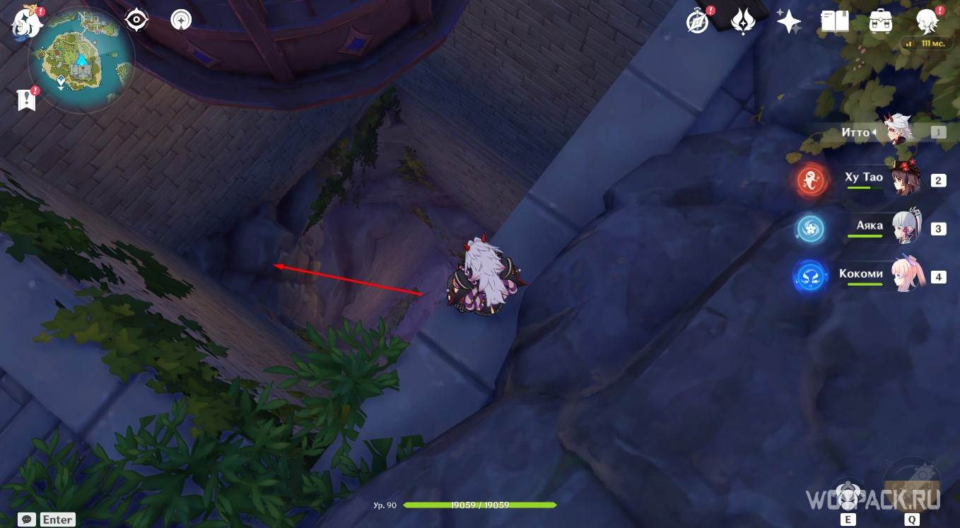 Осмотрев табличку, направляйтесь в руины южнее. Зайдите под скалу и активируйте Крио монумент любым навыком льда, используя например Кэйю.