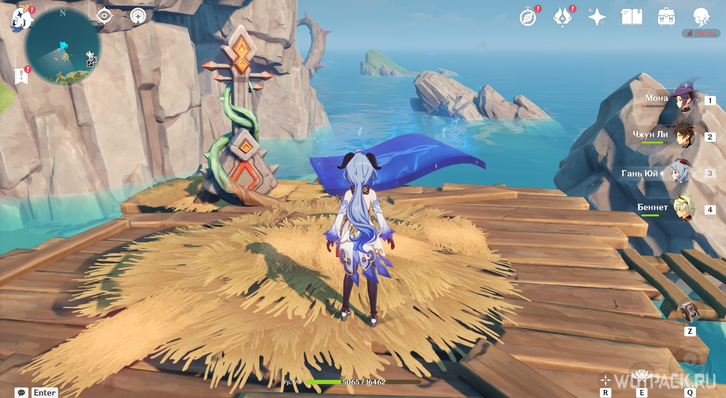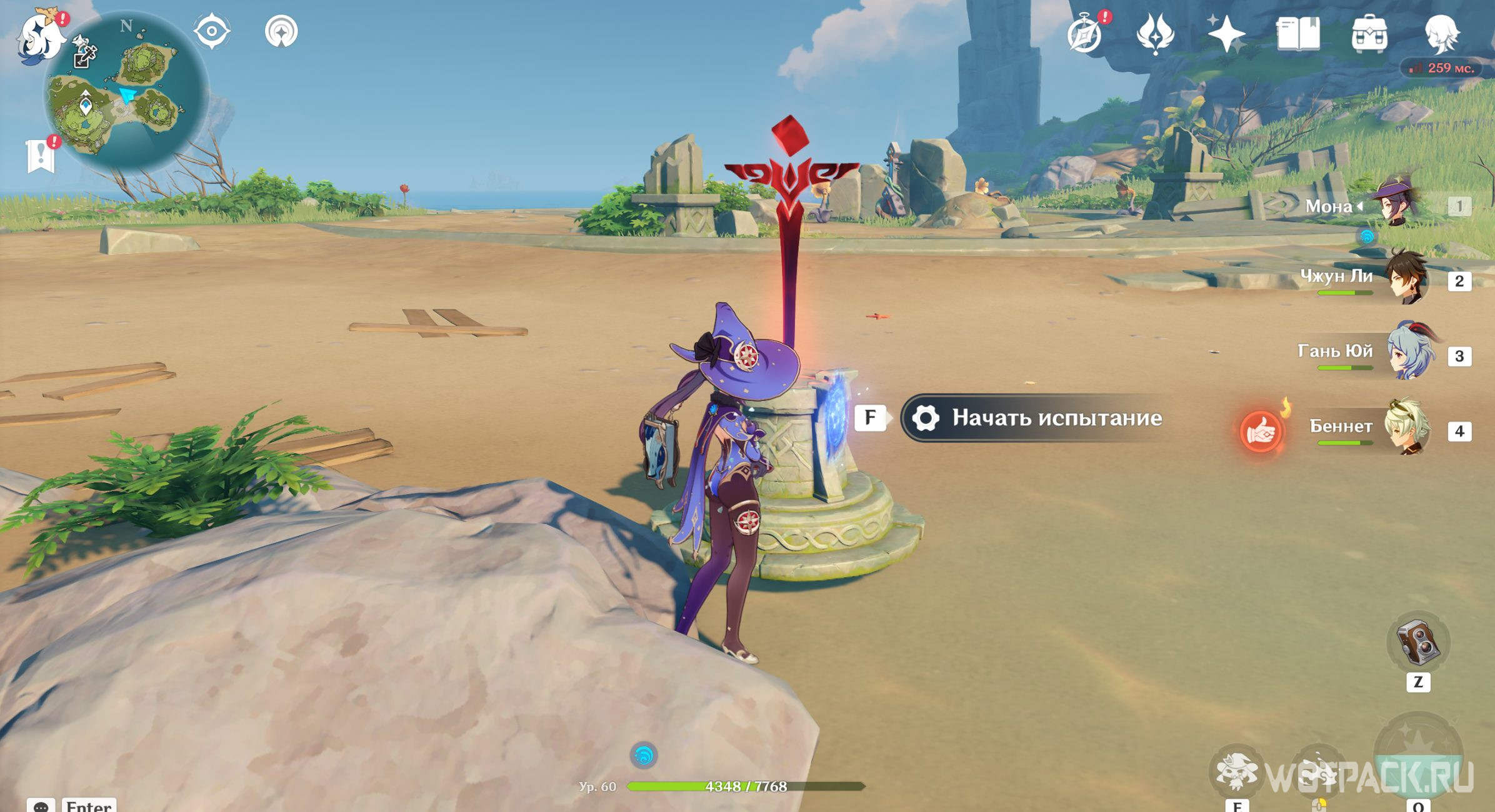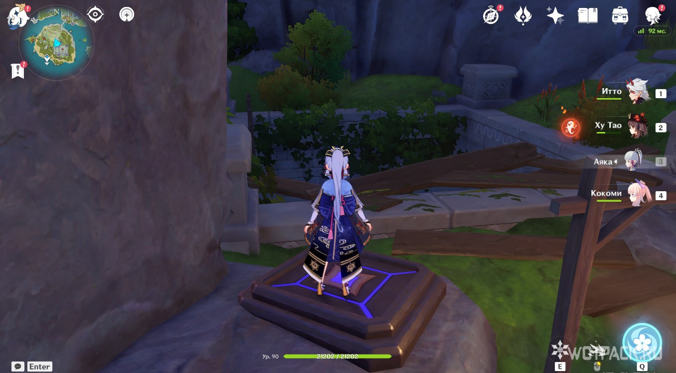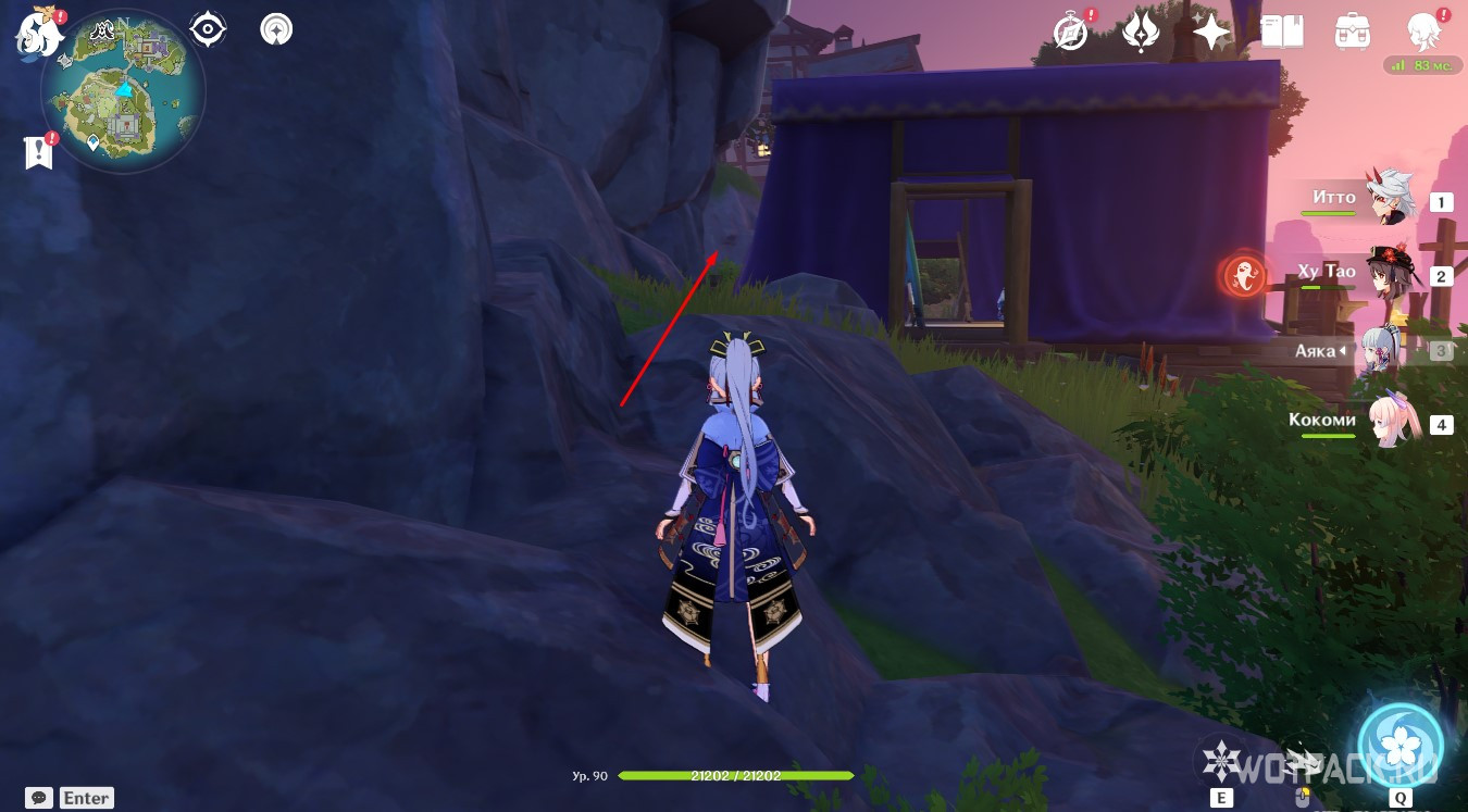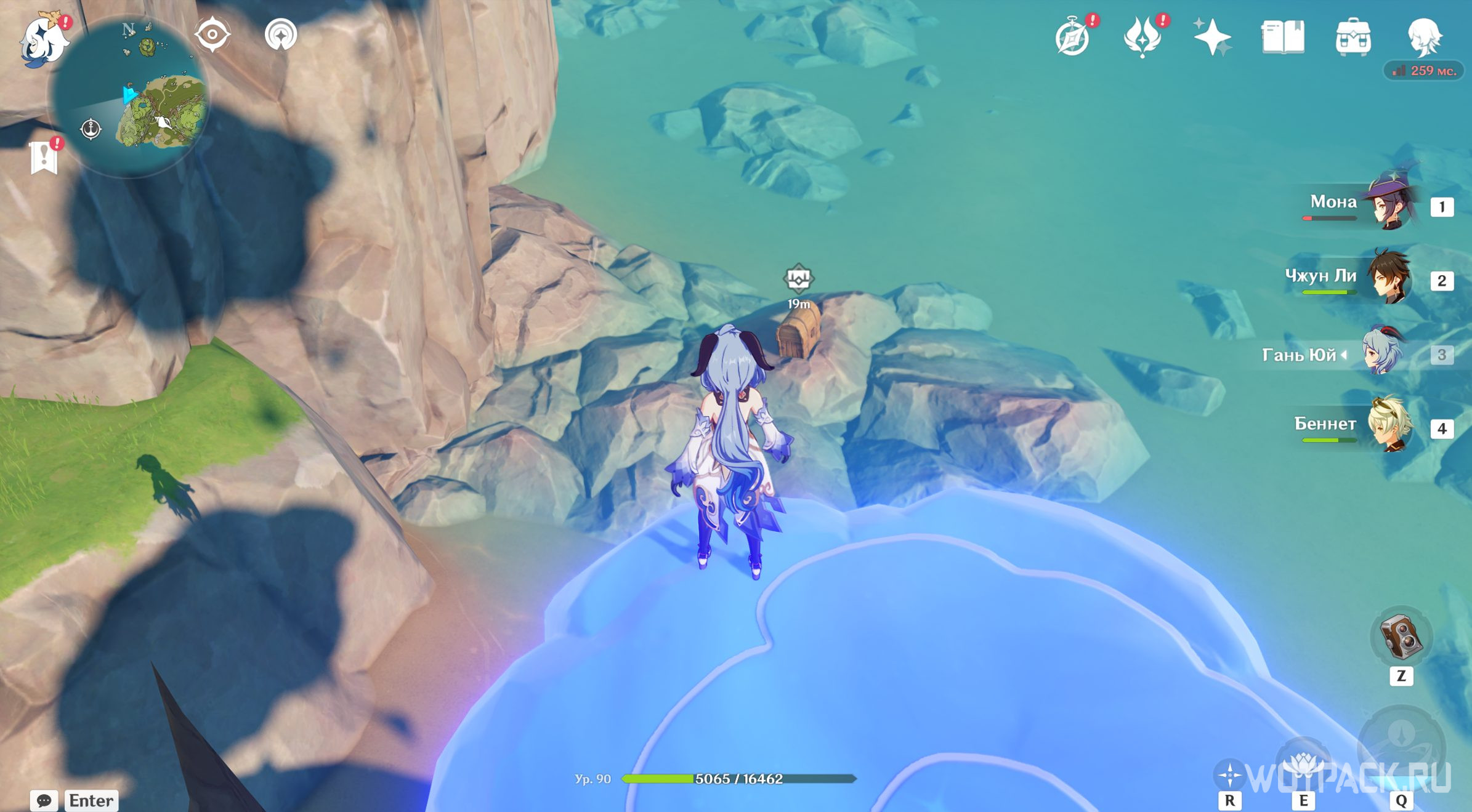 Осмотрев табличку, направляйтесь в руины южнее. Зайдите под скалу и активируйте Крио монумент любым навыком льда, используя например Кэйю.