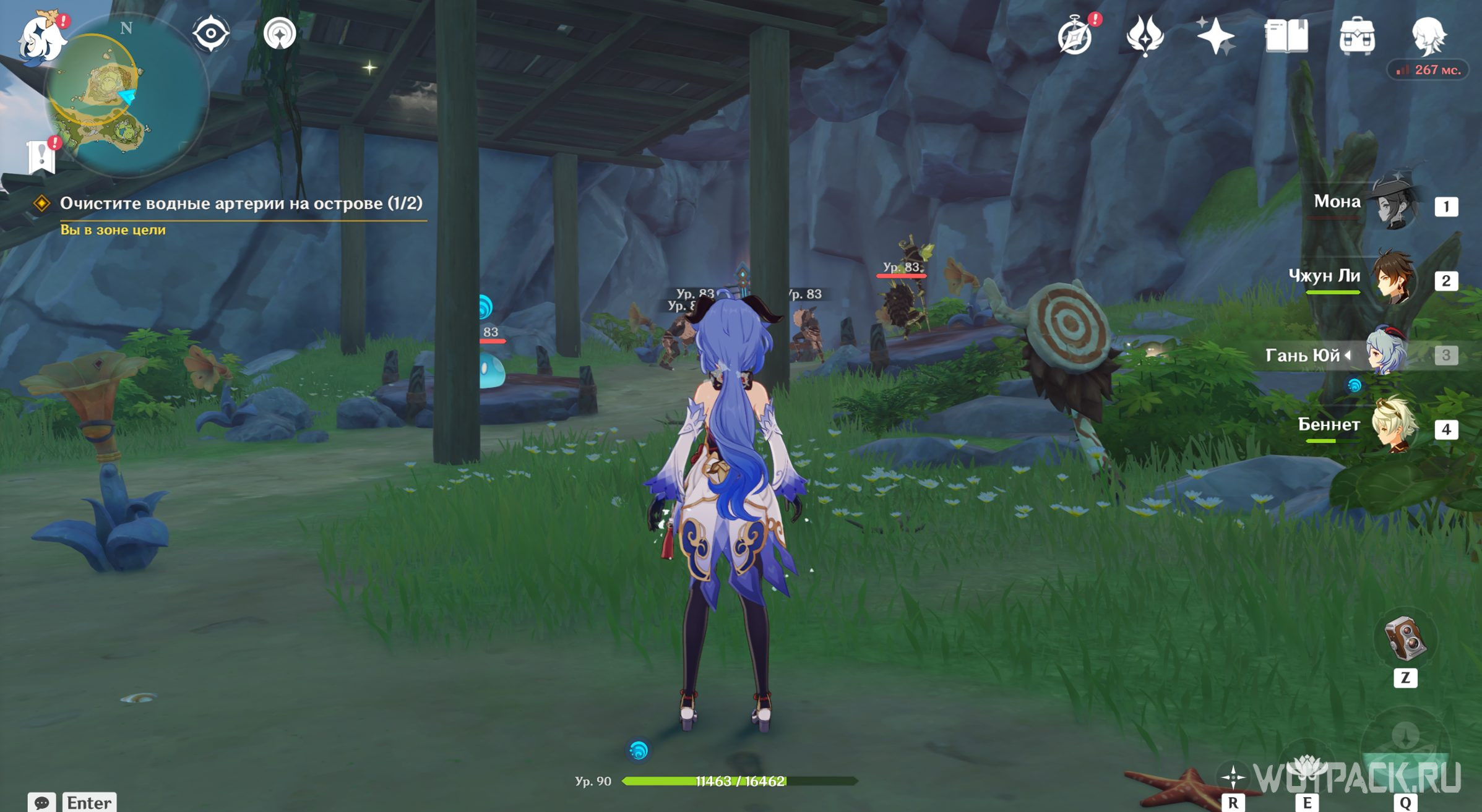 Переключите Опасный остров на его мистическую версию и поднимитесь ко входу в руины наверху, у второго пруда Моны.