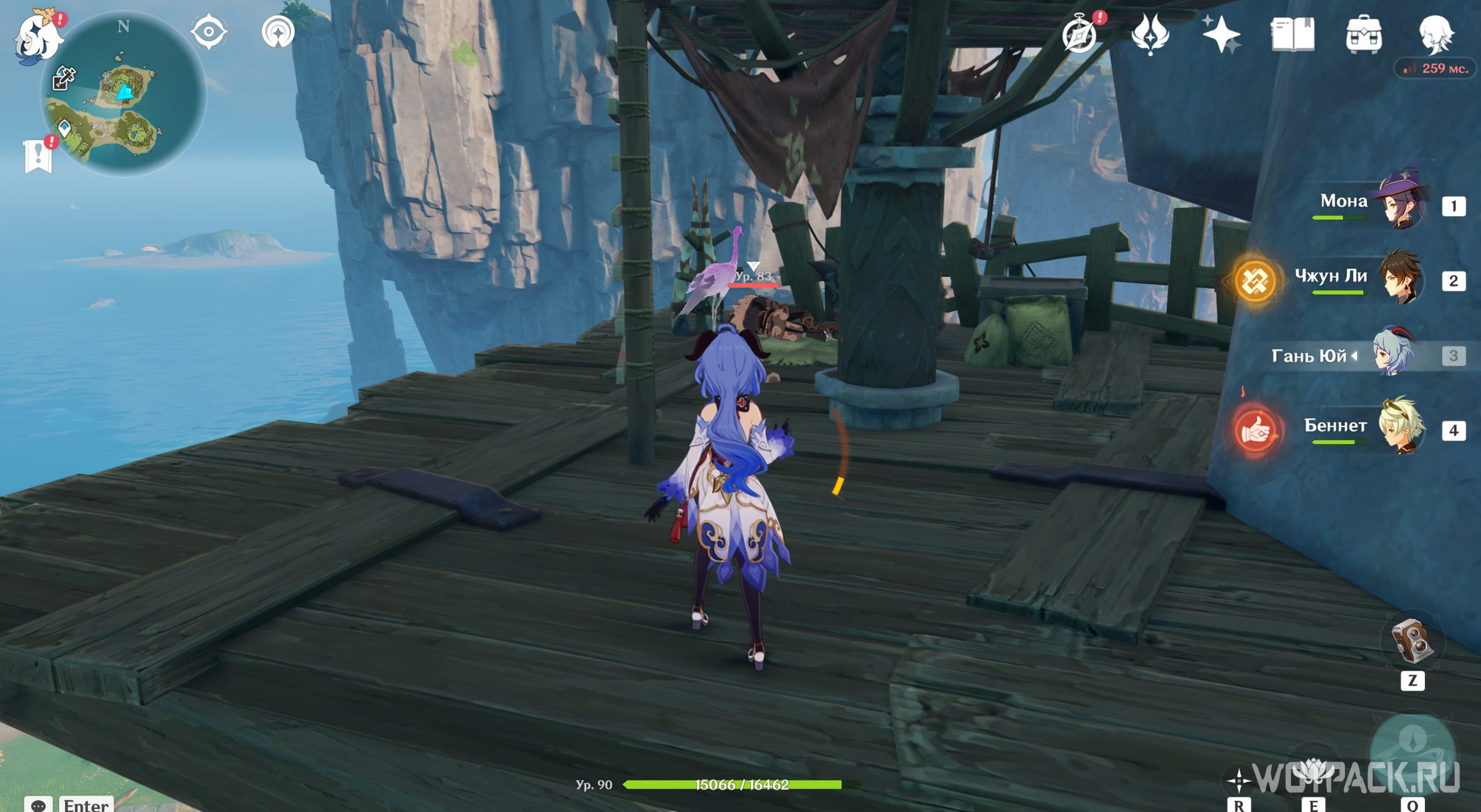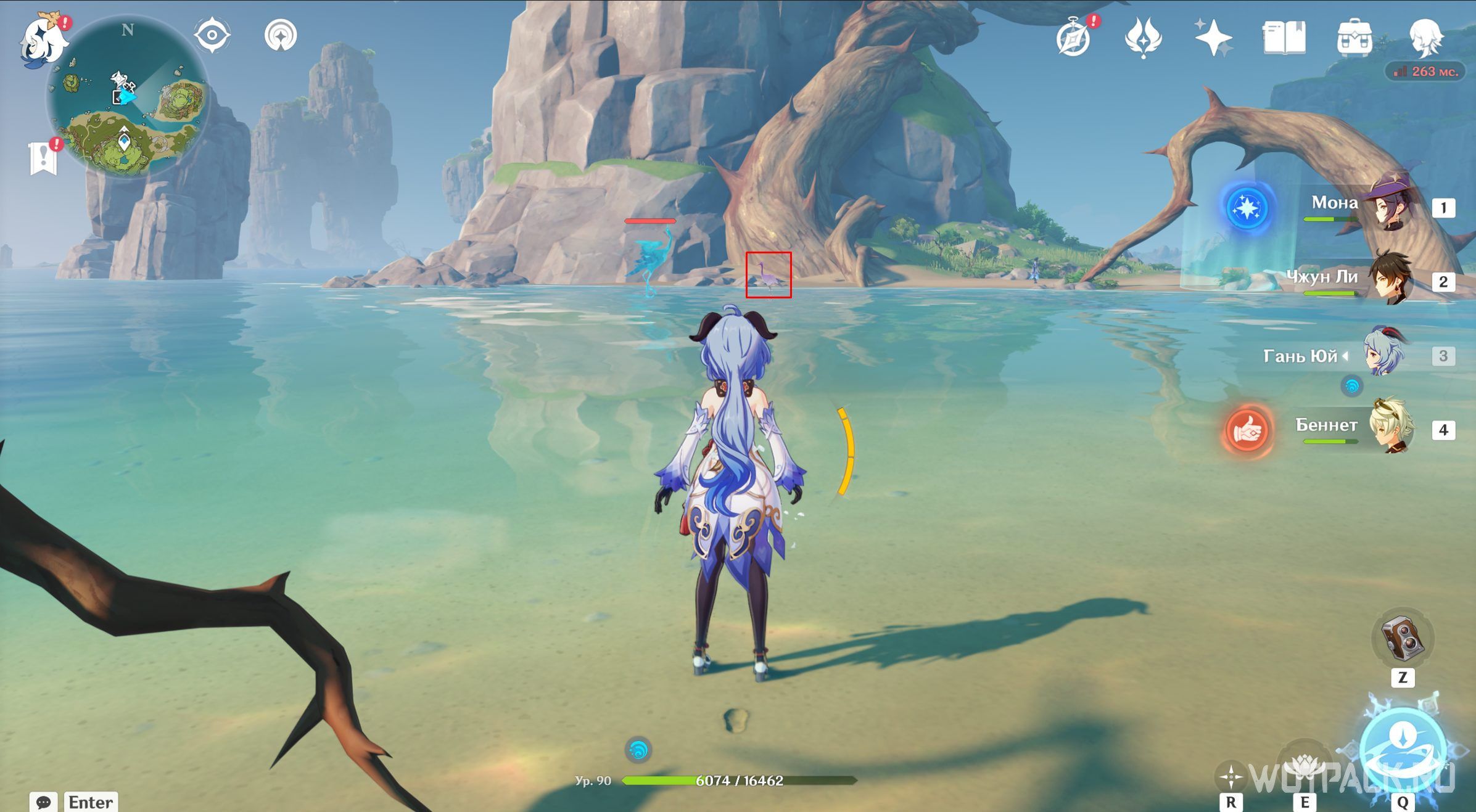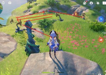 Спустя некоторую дистанцию журавль попытается скрыться в лагере хиличурлов. Вспугните птицу и продолжайте преследование.