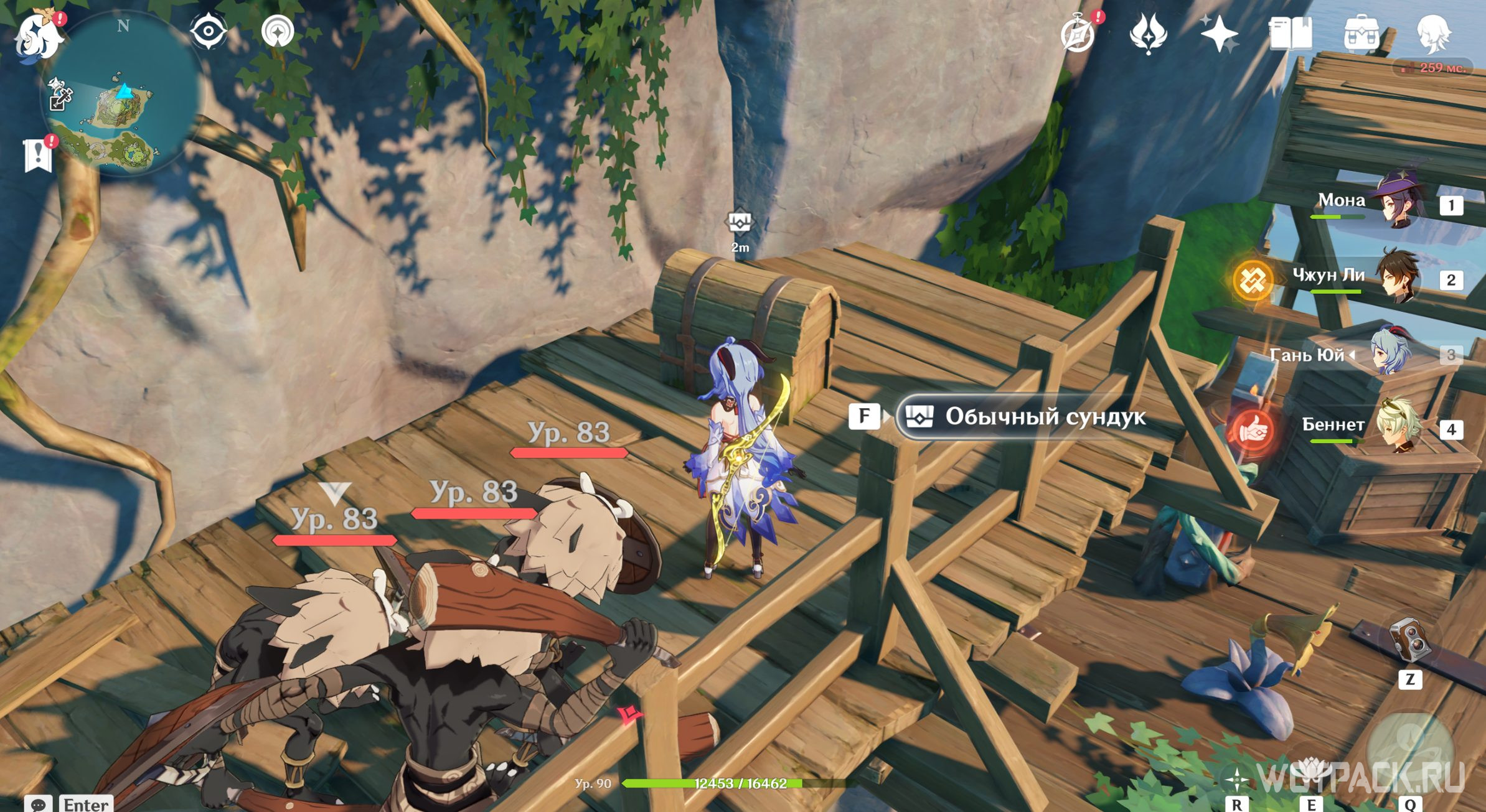Подойдите к кабану, а затем поднимитесь на самый верх. Наградой за ловлю станет Обычный сундук с 2 камнями истока.