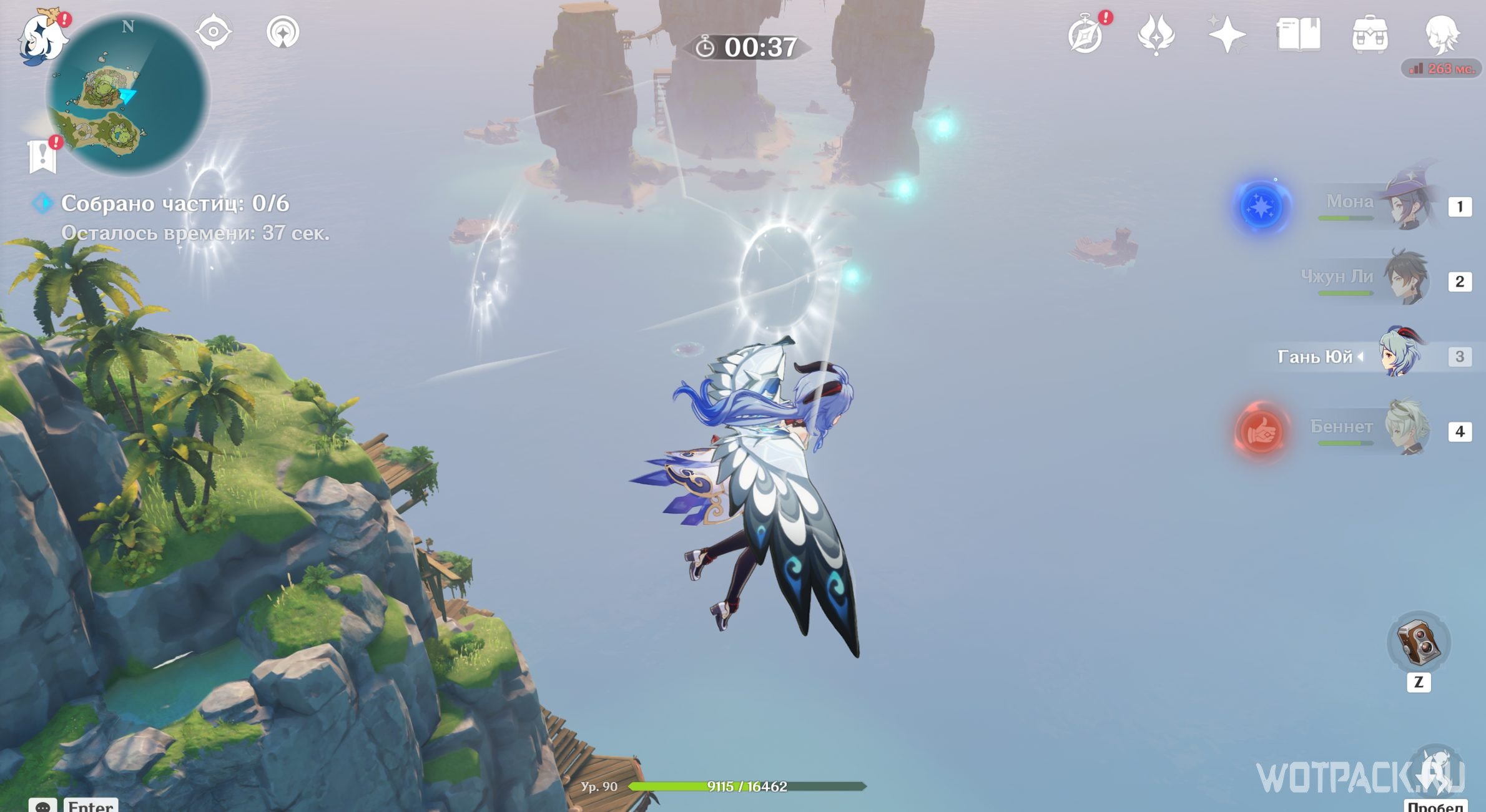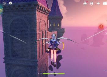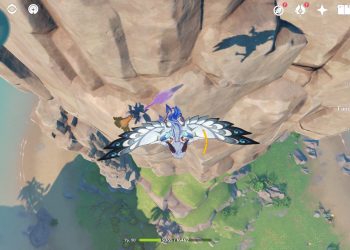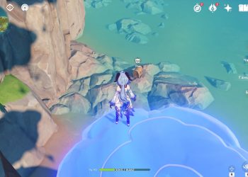 Телепортируйтесь на остров и спланируйте к соседней скале, на которой будет заточена фея в Анемо барьере.