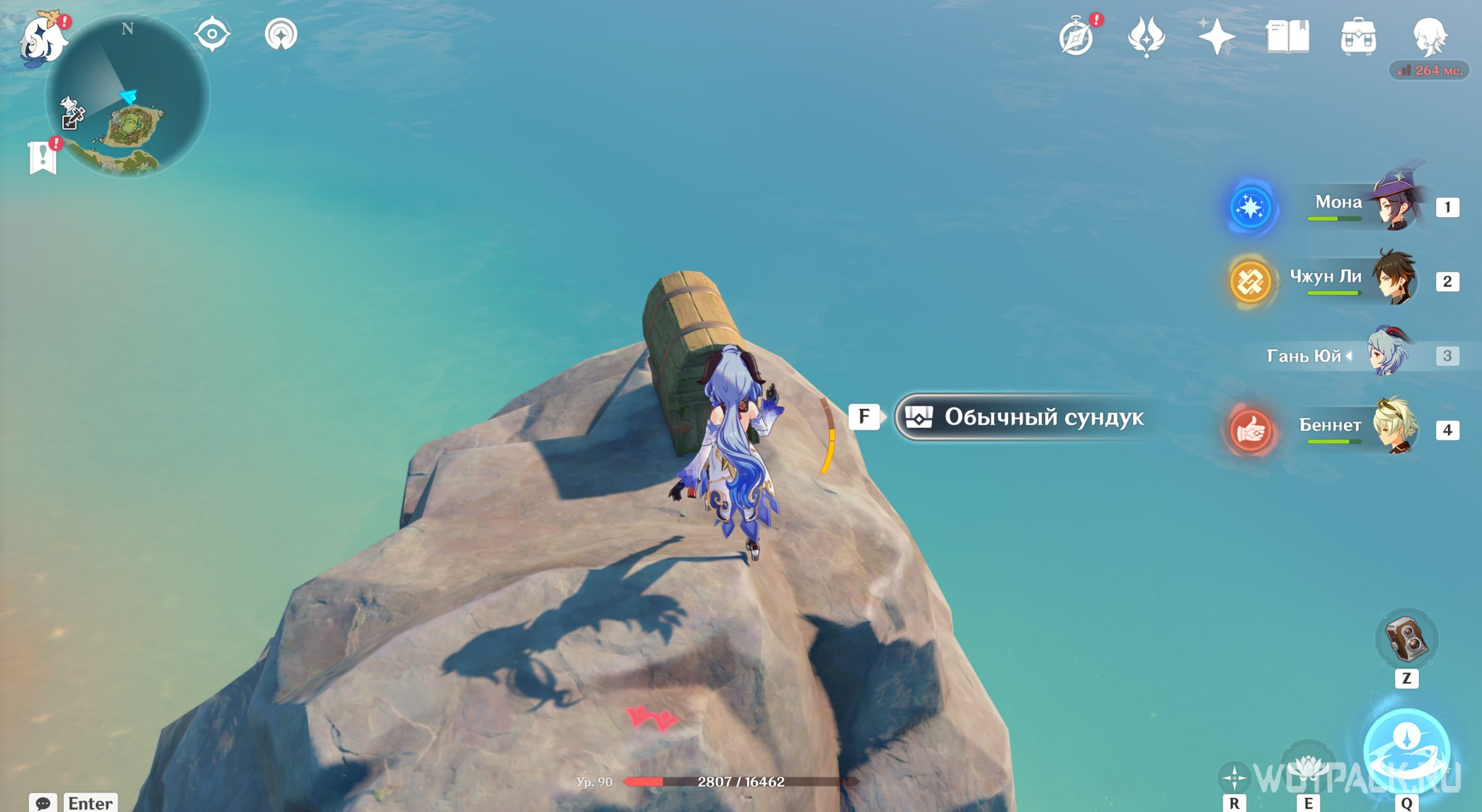 Журавль обогнет остров и оставит обычный сундук в самой южной части локации.