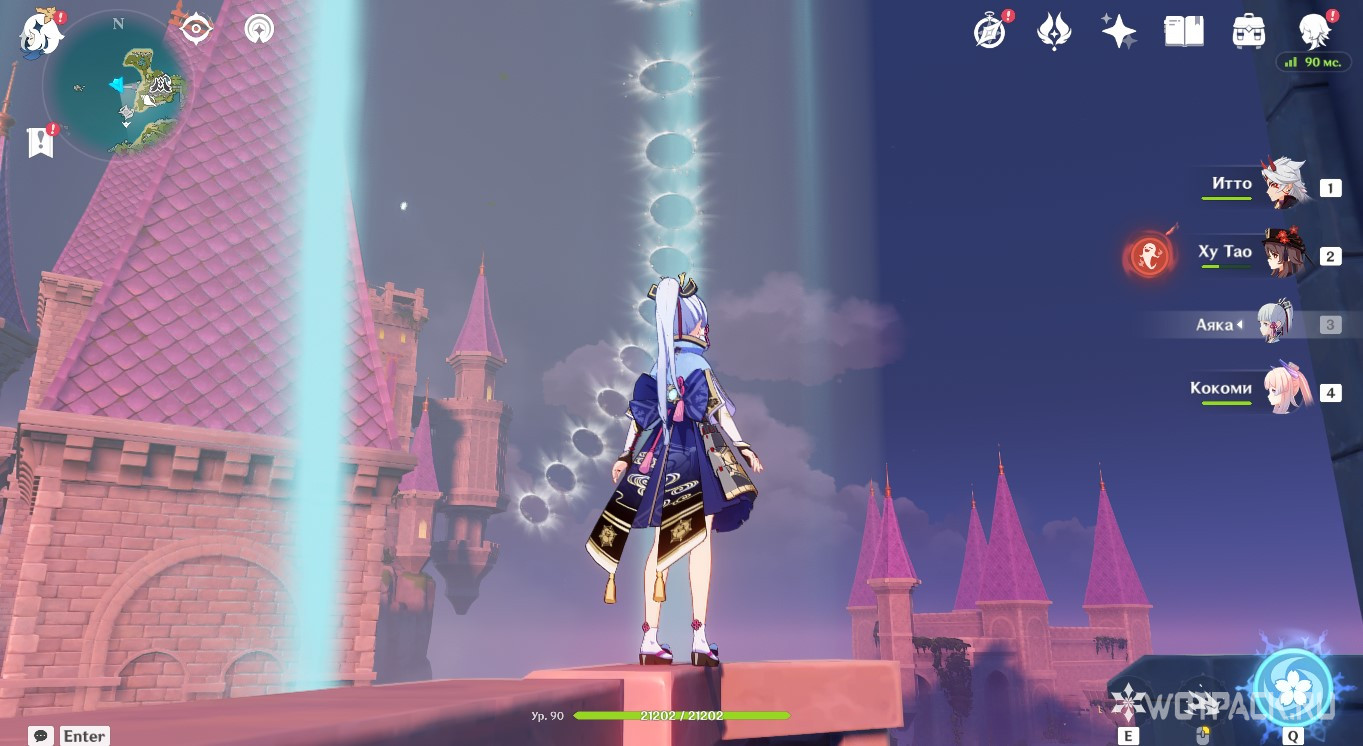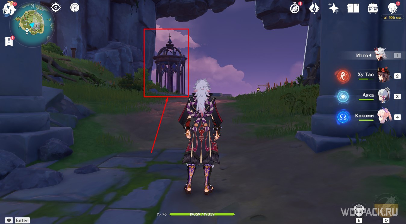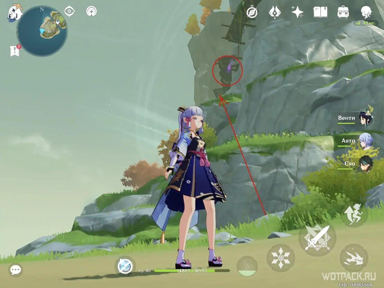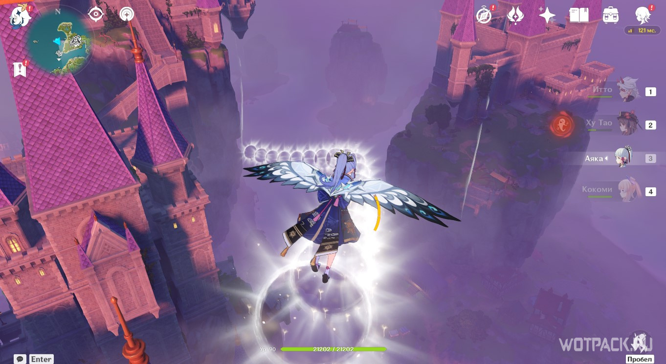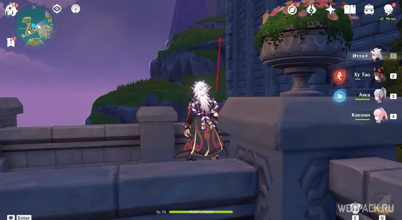 Активируйте Анемо монумент с помощью Сахарозы, Хэйдзо или другого героя стихии ветра. Взлетите на появившемся потоке через кольца, чтобы увидеть подсказку.