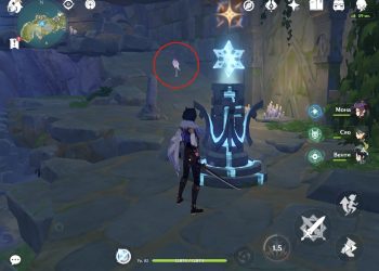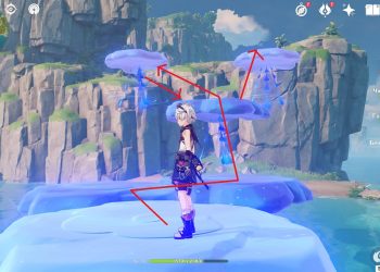 Воспользуйтесь точкой телепортации на вершине горы и спуститесь на планере к северо-востоку острова. Там располагаются 5 Электро монументов и фея. Именно она укажет порядок активации механизма. Комбинация взаимодействия показана на скриншоте выше. Используйте любого Электро героя, например Лизу, Фишль или Сару.