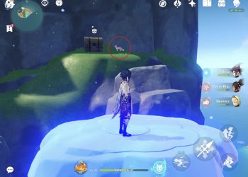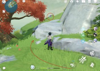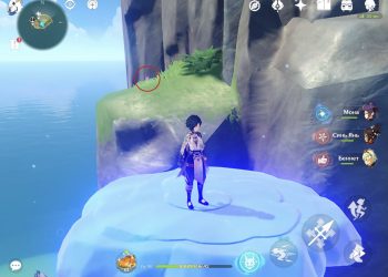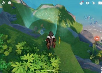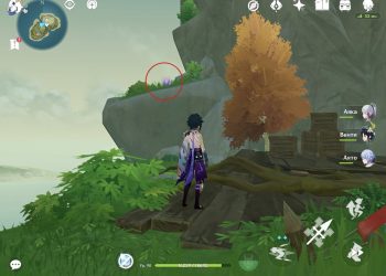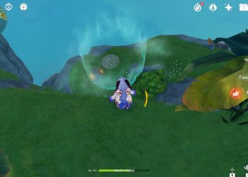 Переместитесь на вершину острова и спуститесь на уступ к северо-востоку от путевой точки. Там у березы летает одинокий Анемо слайм.