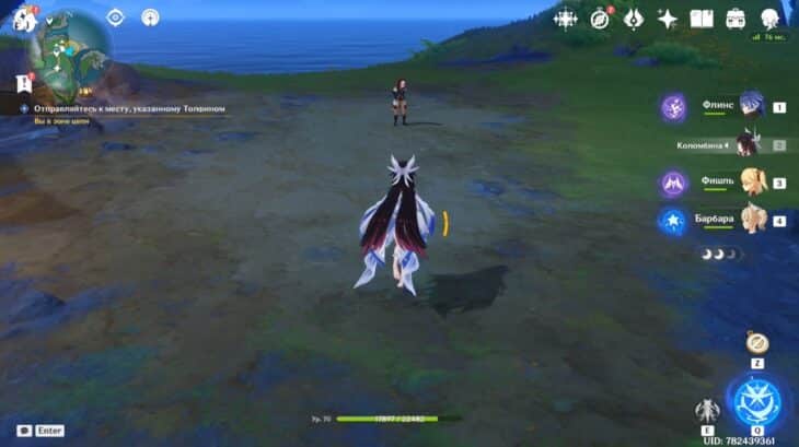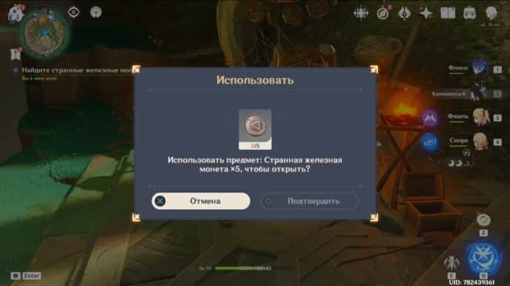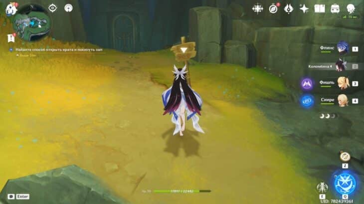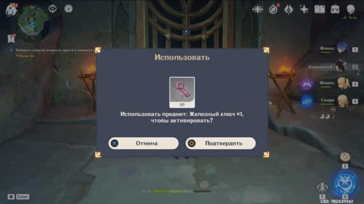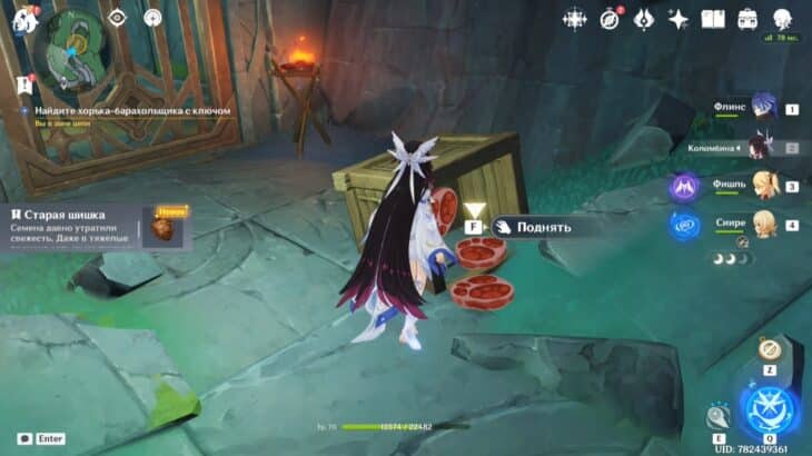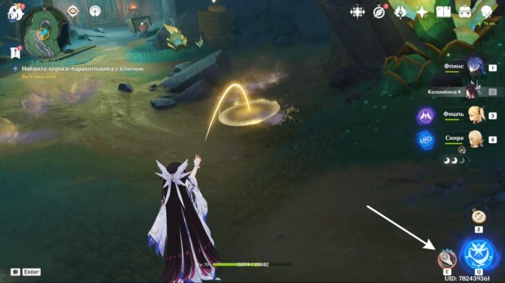 - Подберите монету, тогда элементальное умение персонажа заменится на особый навык из трёх зарядов. Зажмите E-скилл и, прицелившись, бросьте предмет в убегающее создание. Остановив его, сможете забрать ключ.