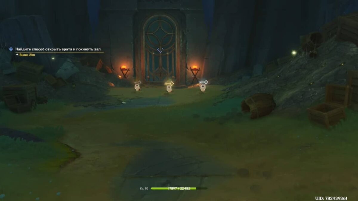Найдите способ открыть врата и покинуть зал 1