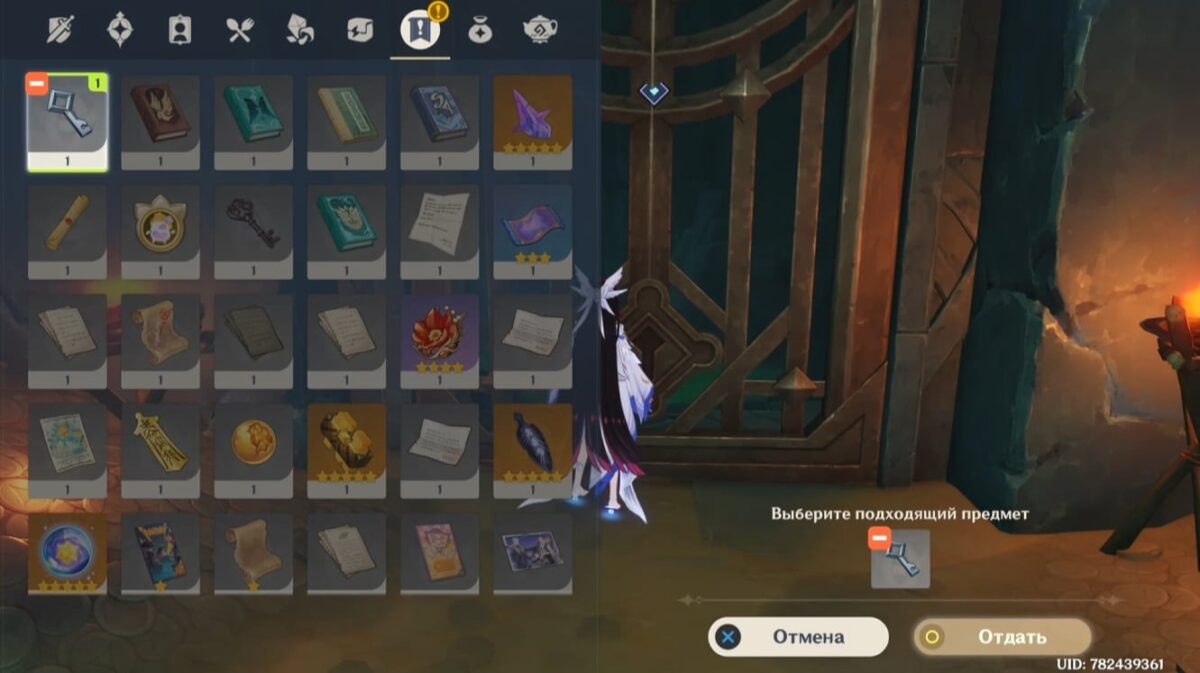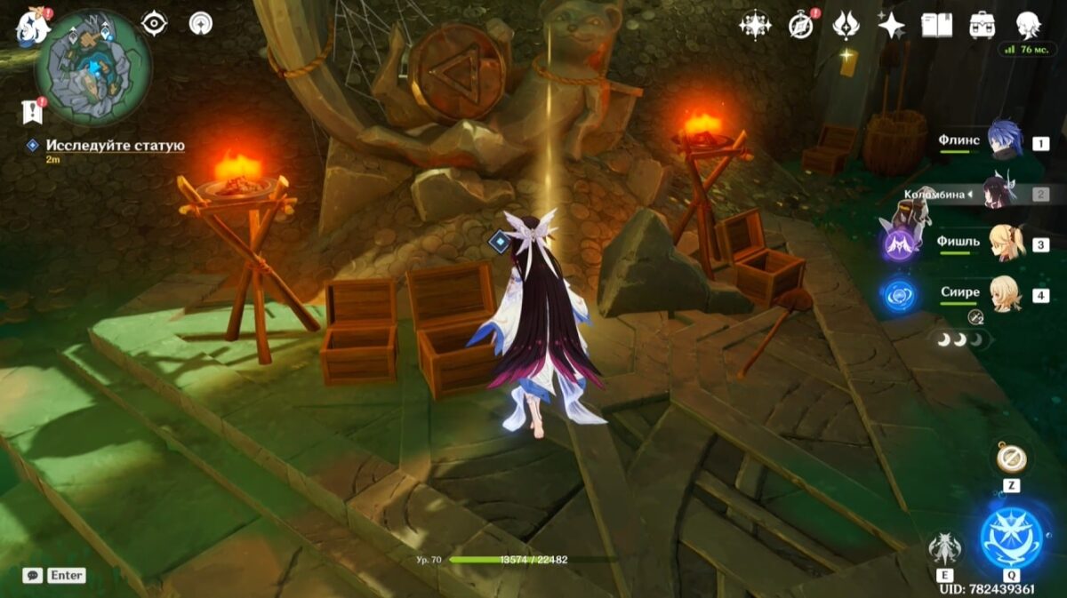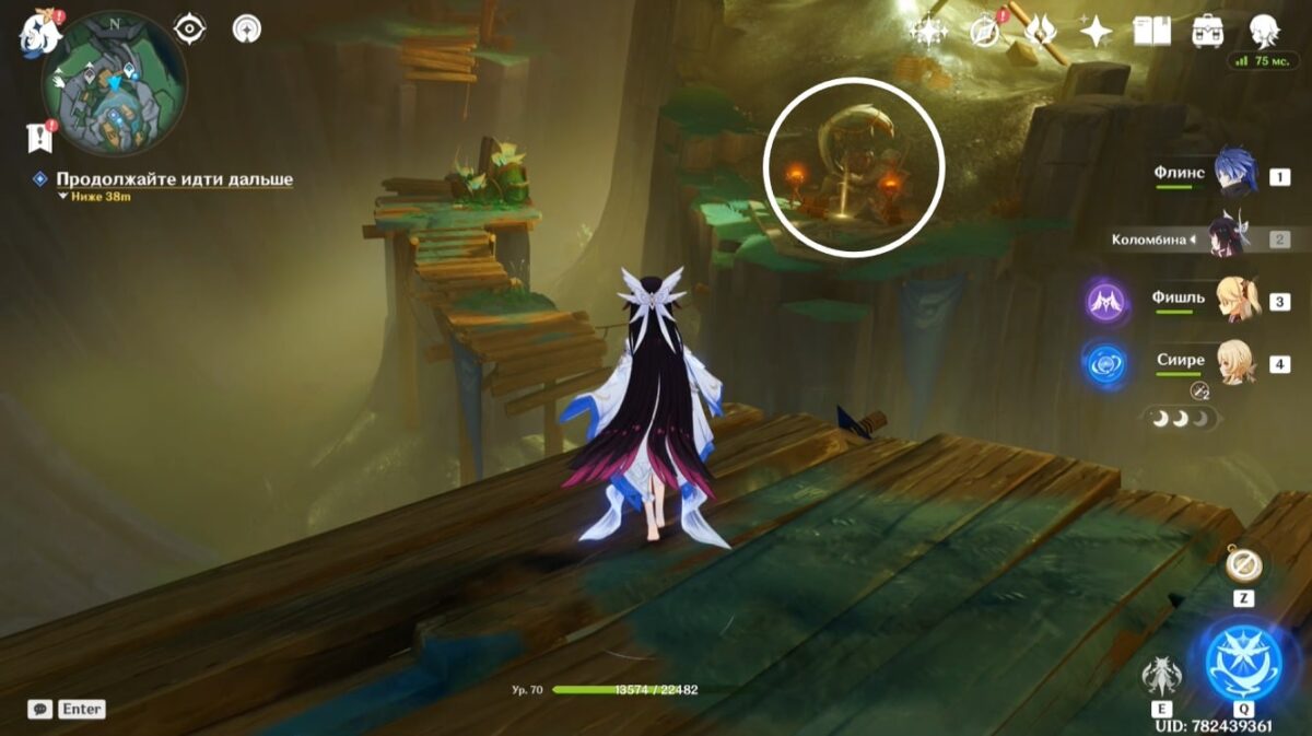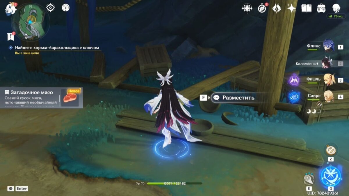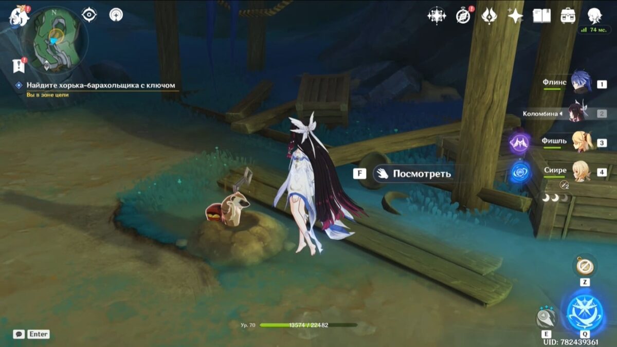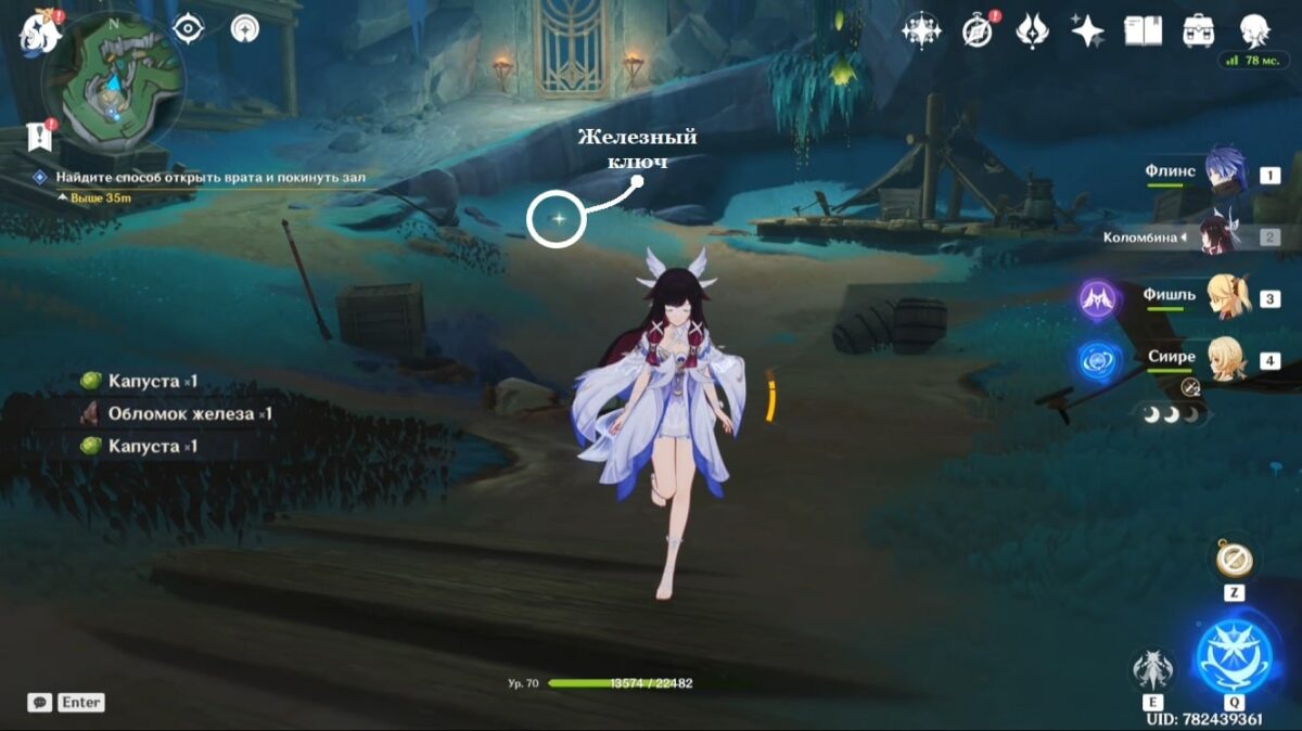 - Подберите монету, тогда элементальное умение персонажа заменится на особый навык из трёх зарядов. Зажмите E-скилл и, прицелившись, бросьте предмет в убегающее создание. Остановив его, сможете забрать ключ.