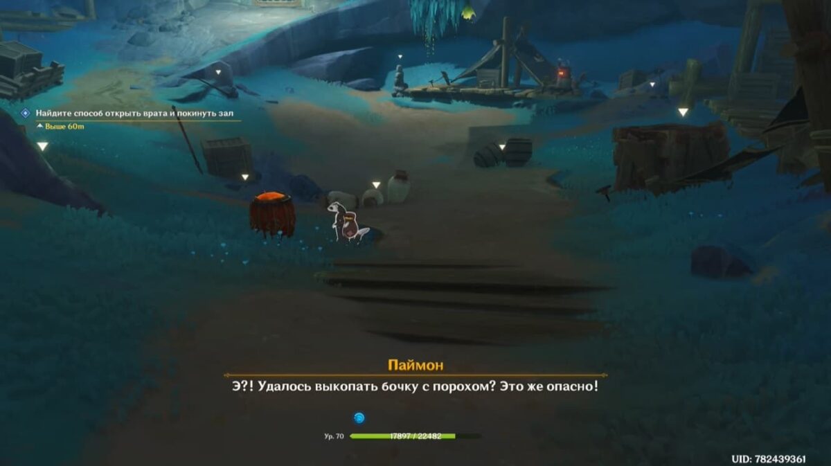 - Бочки — разбудите безобидное подземное существо, которое в спешке убежит на верхний уровень области.