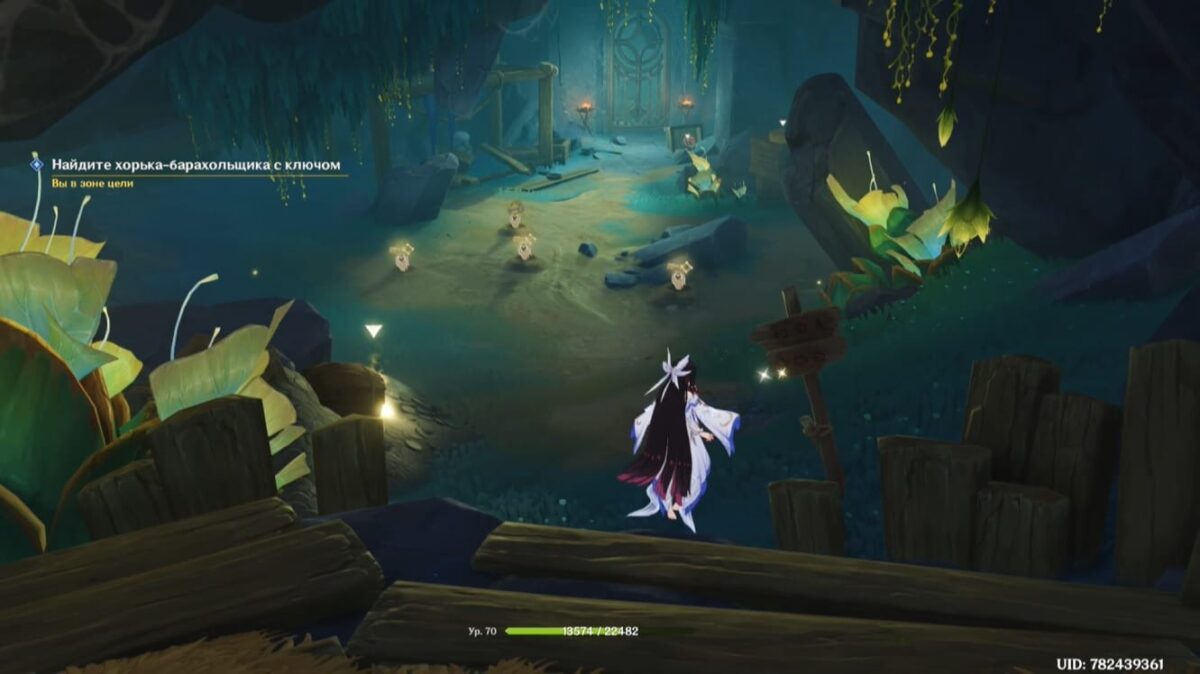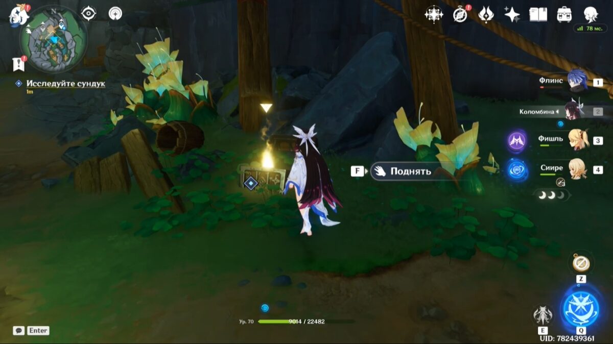 Спланировав в указанном направлении, исследуйте сундук. Взаимодействие с ним пробудит Лучезарного лунапода «Стража утерянного сокровища».
