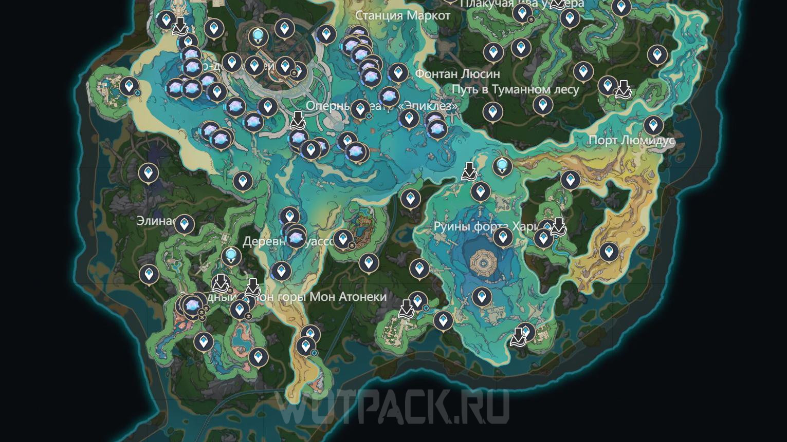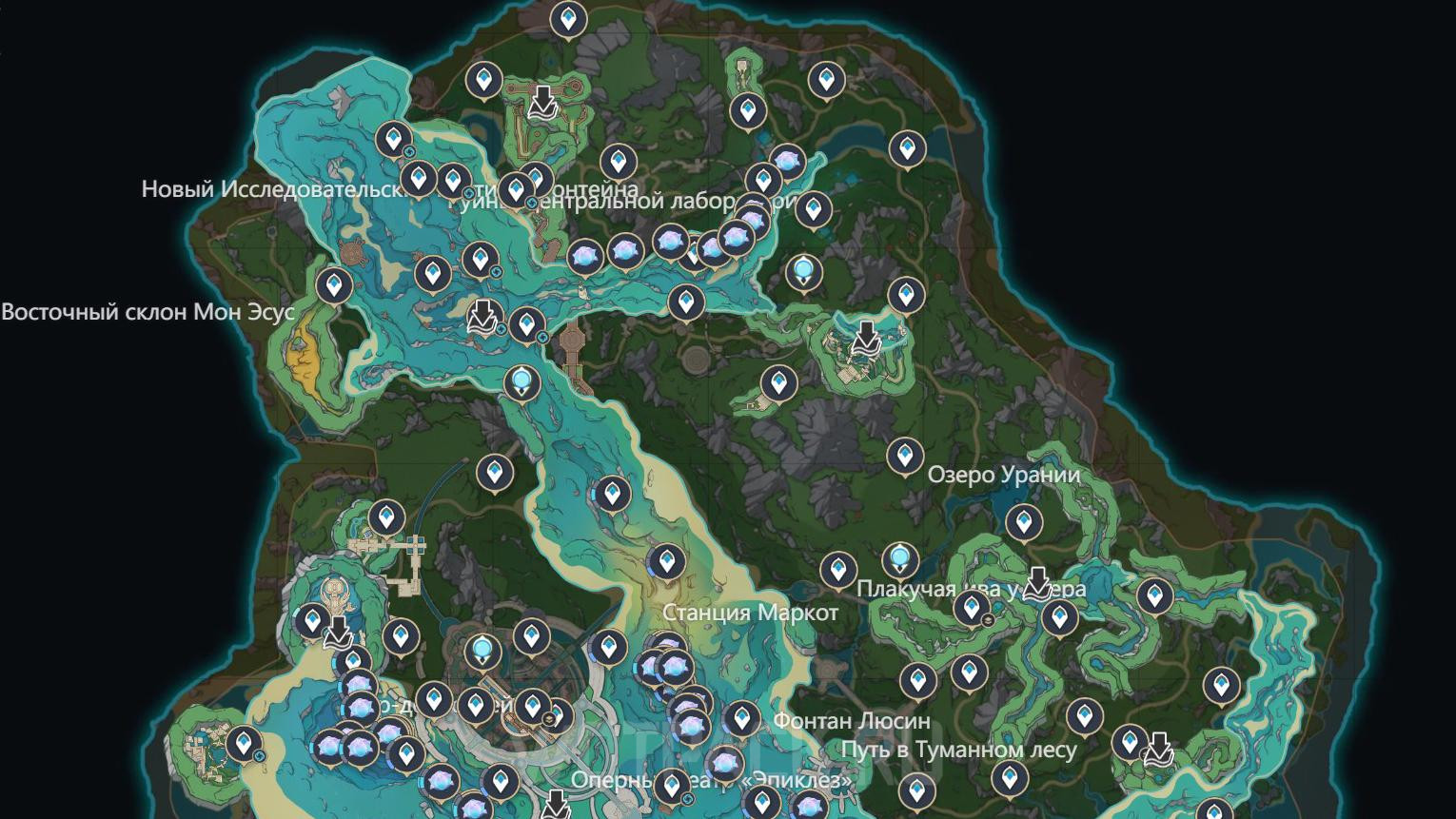 Начните маршрут от подводного телепорта на востоке Кур-де-Фонтейн. Плывите на восток и соберите 9 ромаринов.