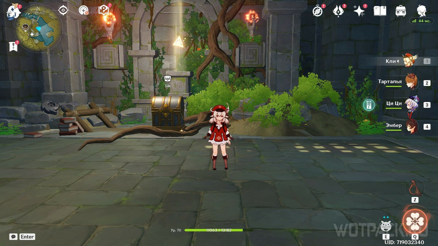 После нахождения всех предметов, поднесите их к монументу. Откроется пещера, в которой лежат 4⭐ артефакты Миллелита и роскошный сундук.