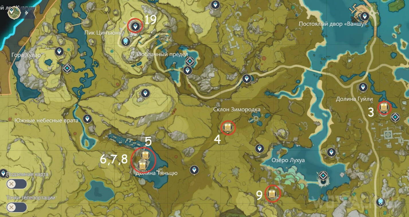 - Вторая — на горе Цинъюнь, южнее телепорта.