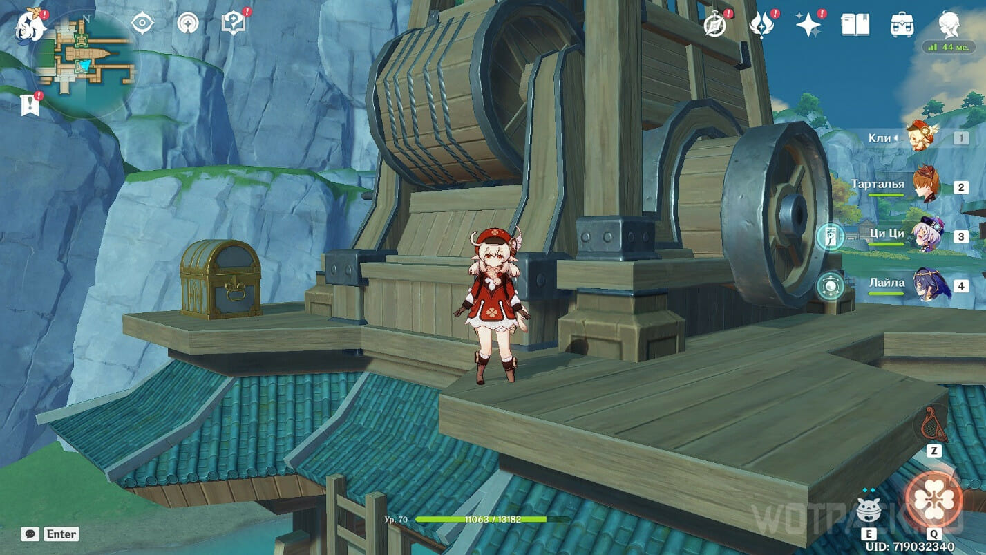 Телепортируйтесь в деревню Цинцэ и подойдите к горе. Забирайтесь на нее, пока не увидите уступ с деревом – сундук находится возле него.